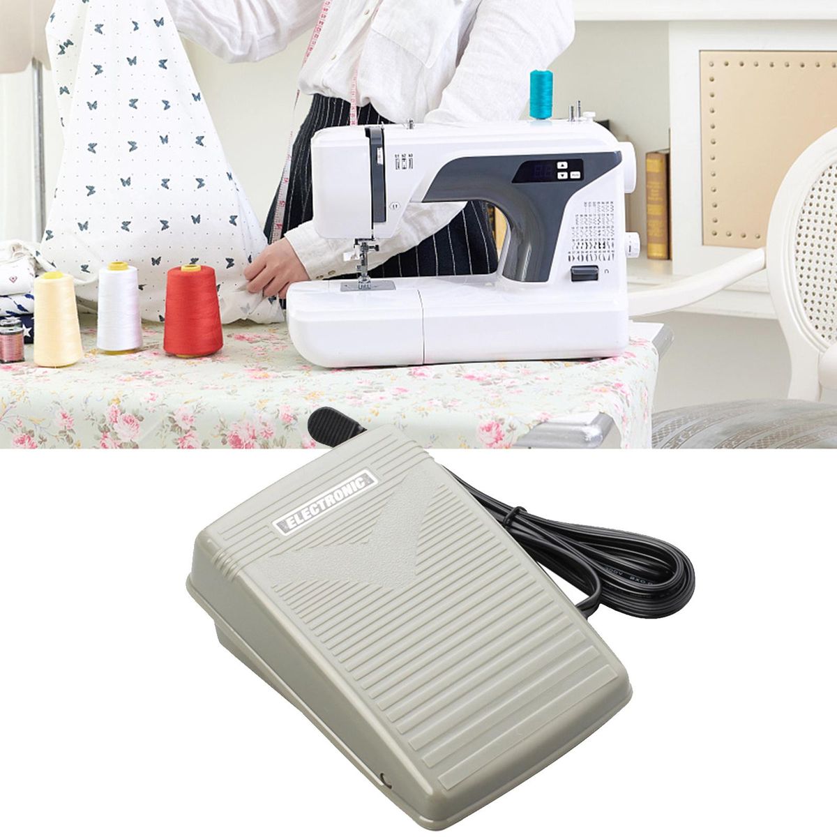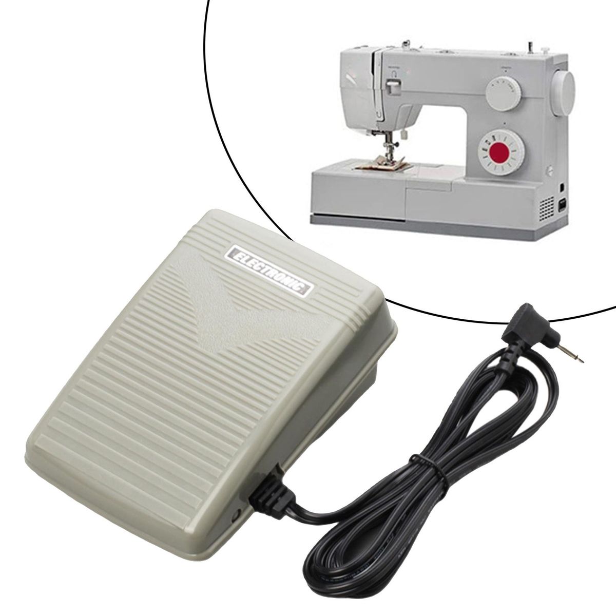 Compatible with Singer Sewing Machine Models: 9105, 9106, 9120, 9130, 750, 2999, 3100, SA2400L, etc and Janome 160QDC, 3000, 3022 etc.Eas to operation: works while you keepping holding the switch with your foot and release to turn off.Free your hands and improve safety and prevents injuries in an emergencyMade of high quality plastic and with slotted surface prevents slipping and more efficient operationVoltage: DC15V, 190x140x75mm/7.48x5.51x12.95inch; Cord Length: 1.5m/59.06inch