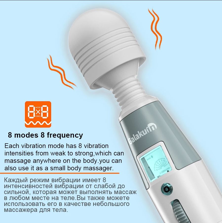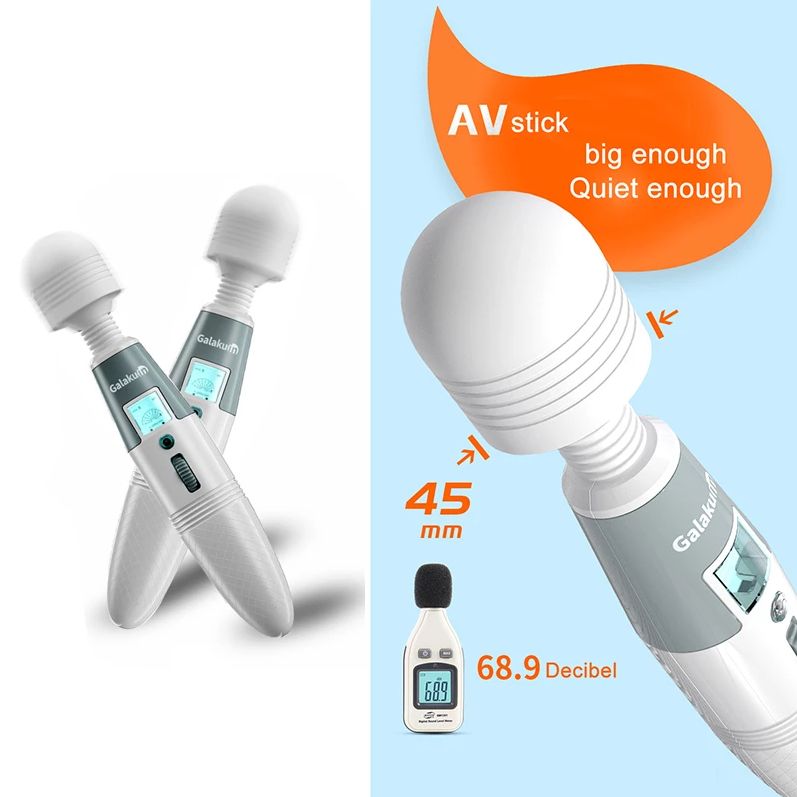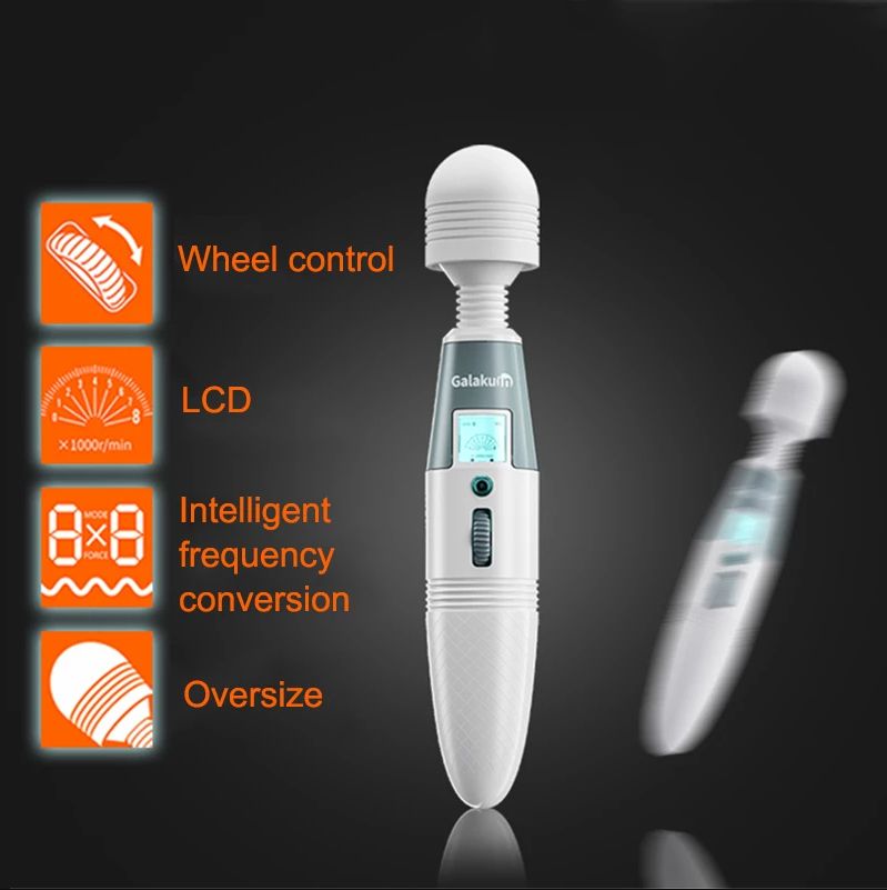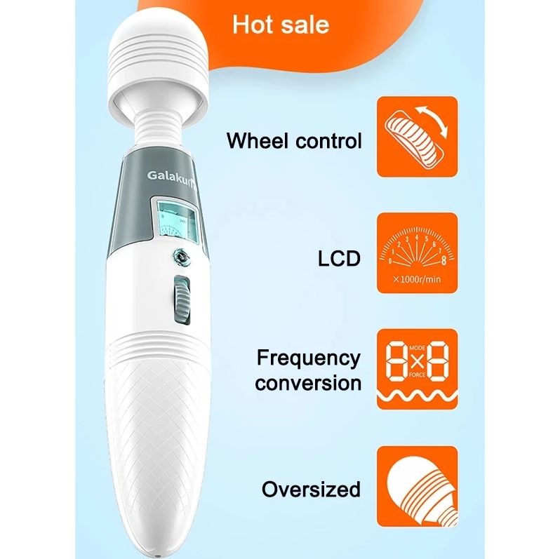 Features:This latest AV vibrator has novel appearance and simple operation. Simply scroll the wheel to adjust vibration intensity, and the button can switch between 8 frequencies. The hand is very comfortable, and the 45mm width head can fully stimulate the vagina.