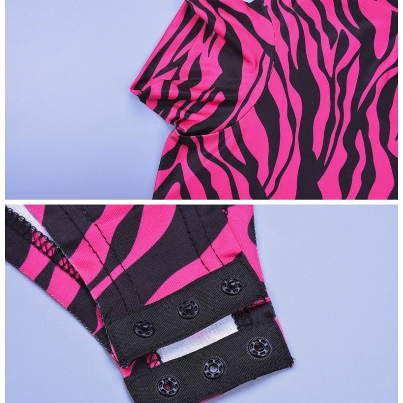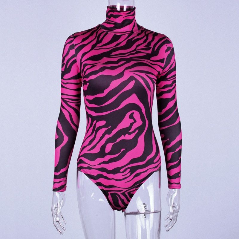 1X Sexy Bodysuit Women Zebra Animal Print Neon Green Hot Pink Turtleneck Long Sleeve Body Suit Tops Spring C70-I94