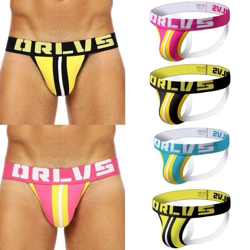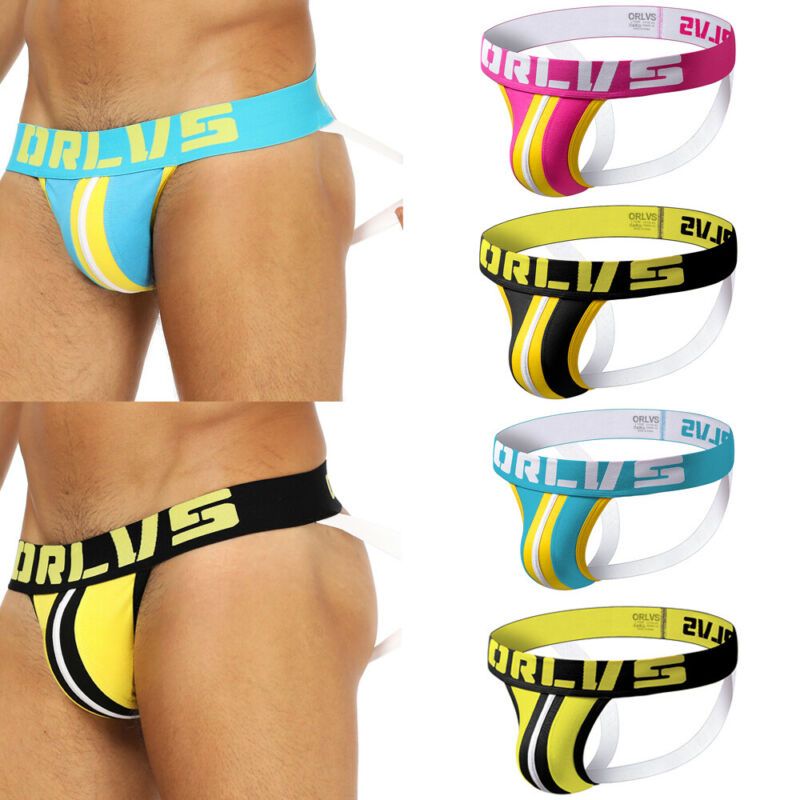 1X sexy casual Men Briefs Jock Strap Breathable Underwear Backless Jockstrap Underpant Thong Black Blue Pink Yellow