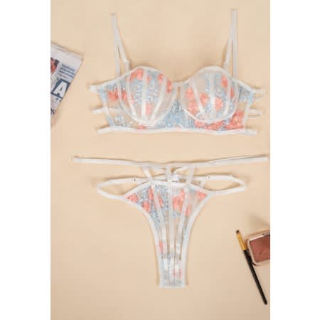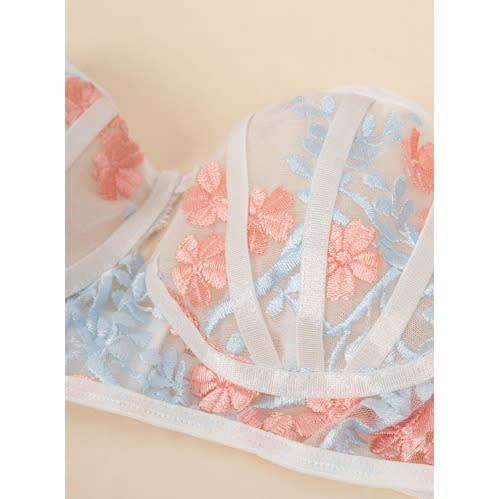 Women's Embroidery Push Up Bra + Lace Panties Suit