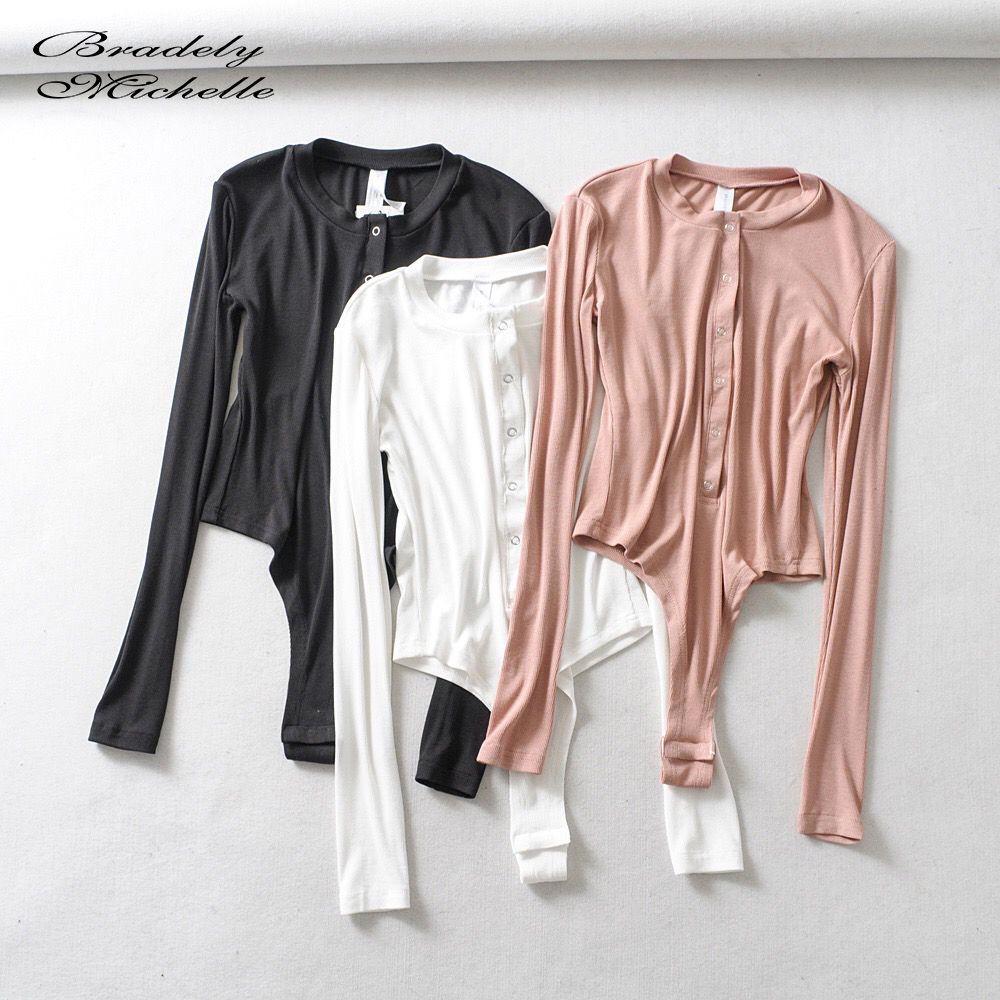 1X Sexy long sleeve slim knitted bodysuits women club outwear jumpsuits for women ladies cotton tops