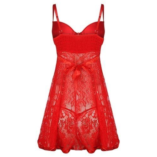 Sexy night wear with G-ring and ribbon belt with silver embellished, used for your convenient, enjoy the bliss free air flow, transparent material, foam push up bra cup, easy to maintain can be washed with hand or machine.