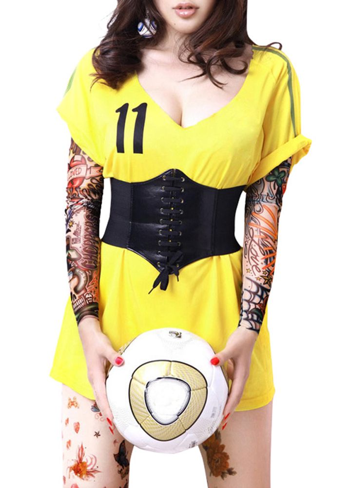 Contour your tiny waist in this trendy and sexy wide waist belt. It features corset style with PU leather splice, lace-up front, elastic band and fastening tape at the back. Finished with highly stretchable fabric and adjustable bandages, it's suitable for most people.
