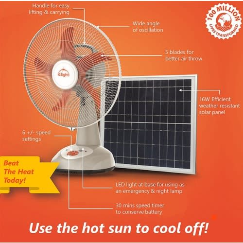 Buy Sf21 14 Inch Solar Fan With Inbuilt Light, Up To 18hrs Runtime & Get A Free A2 Solar Lamp in Nigeria