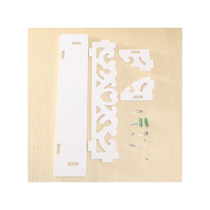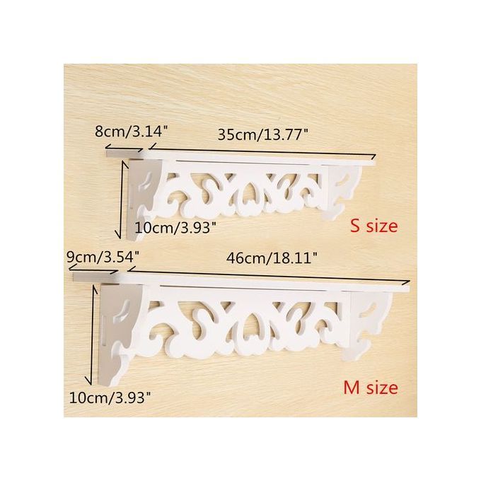 Description Material:WPC (Wood-Plastic Composite) Color:White Size: M:(L)X(W):46X9cm/18.11X3.54"(appr.) S:(L)X(W):35X8cm/13.77"X3.14"(appr.) Package included: 1 Pcs Wall Shelf (included four pcs 10mm screws,two pcs 20mm screws,two pcs expansion pipes and two pcs Iron parts) Features? New and high quality. The wall shelf have white,carved,pierced,wall-mounted and so on features. If you?re short on space, the wall-mounted wall shelf can provides a convenient solution. If you have enough space, it can decorate your blank wall, and make your room more beautiful and charming. Perfect for Living room, Bedding room, Study, Kids room, TV Background,ect. This is a good gift choice to your friend. Enjoy your shopping time,have a nice day! Notice: Please allow 1-3mm error due to manual measurement and make sure you do not mind before ordering. Please understand that colors may exist chromatic aberration as the different placement of pictures.