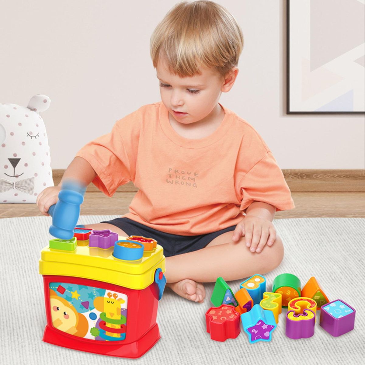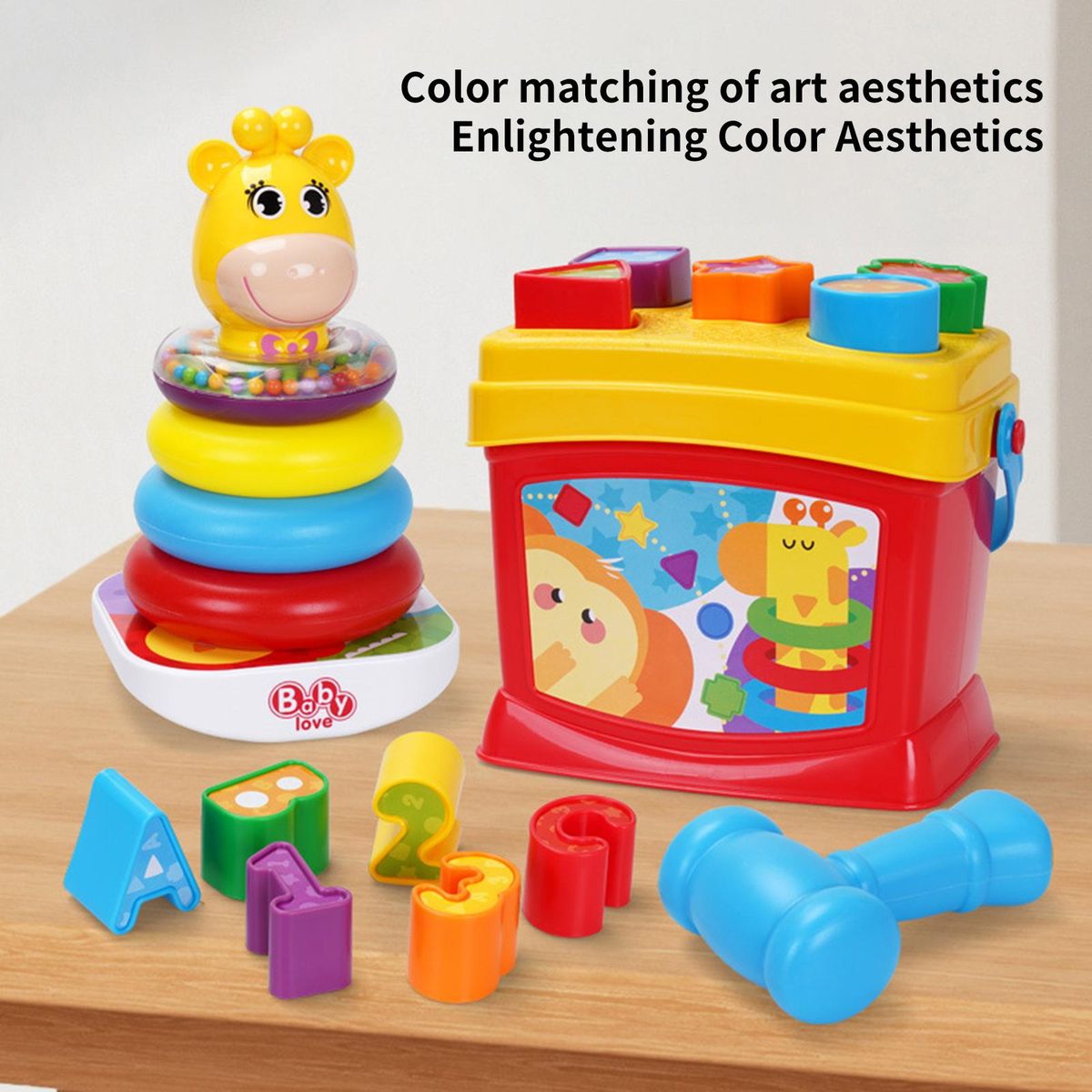 This educational toy set can improve your children's hand-eye coordination, exercise shape matching, color cognition and grip ability.