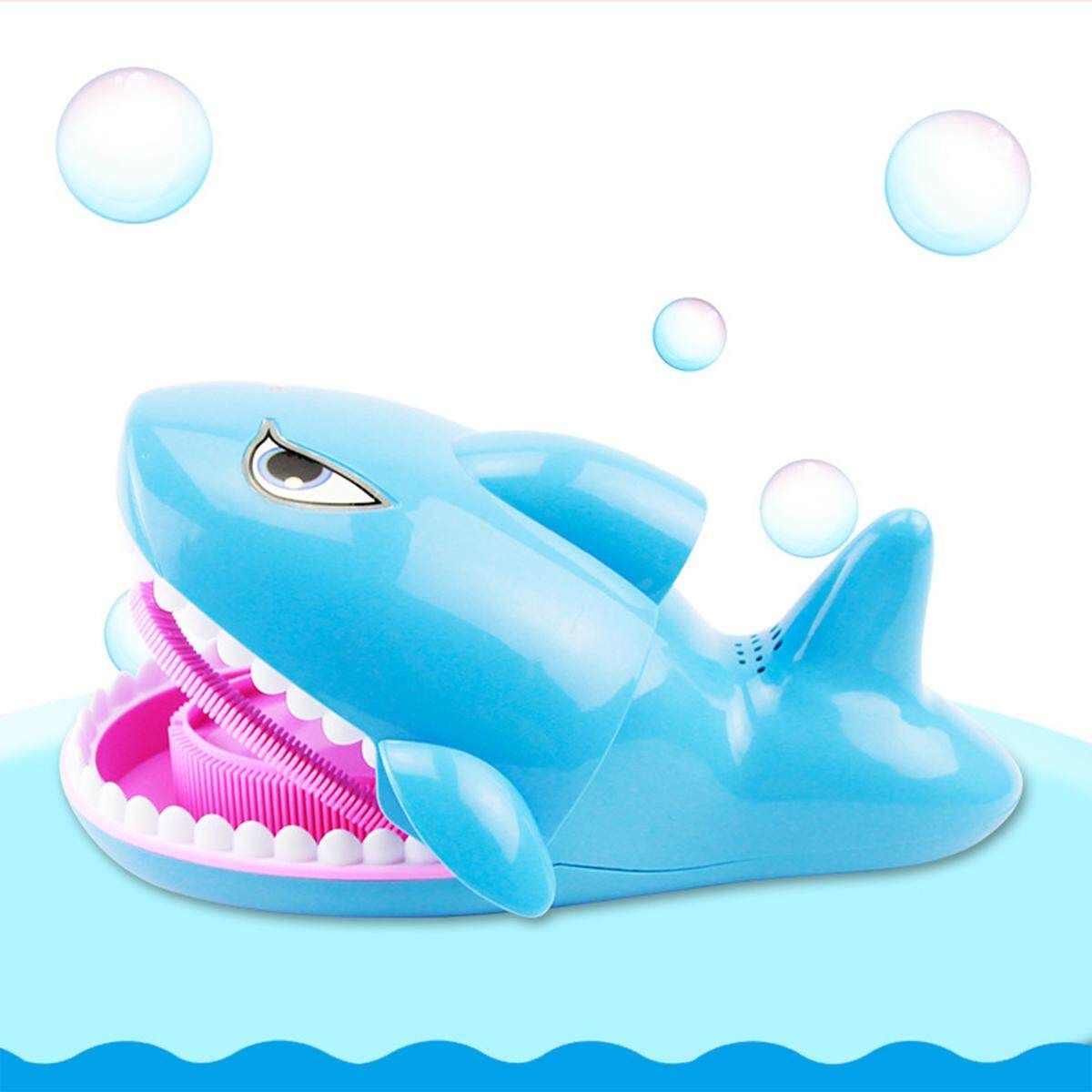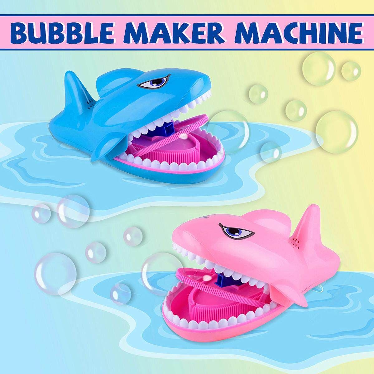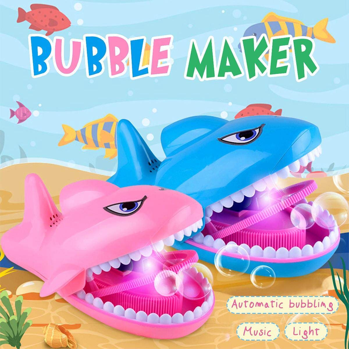 Open the shark's mouth and blow the bubble automatically. When you close it, it stops.