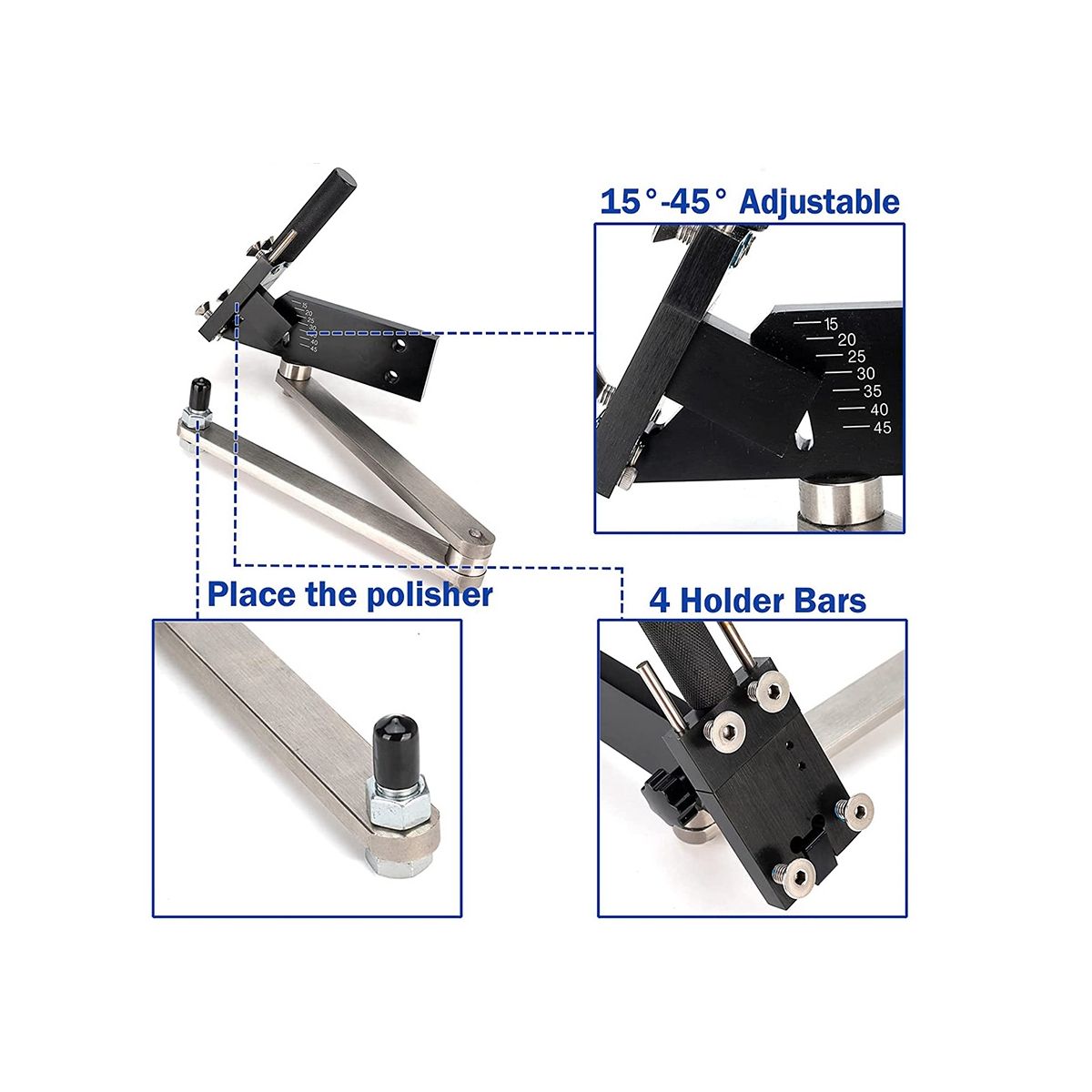 Excellent design 15°-45° AdjustableThe rotatable head allows grinding the cover The crank arm is upgraded to connect by bearings to avoid angular deviation