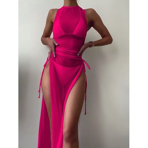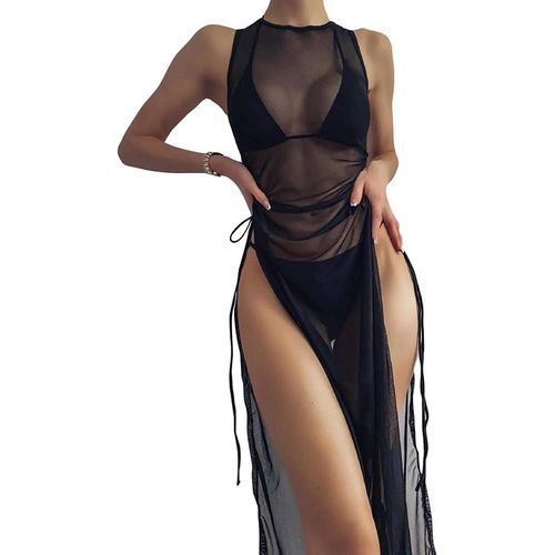 - Beach cover up with drawstring waist, sheer mesh, long length and high split finished, ultra amazing and chic