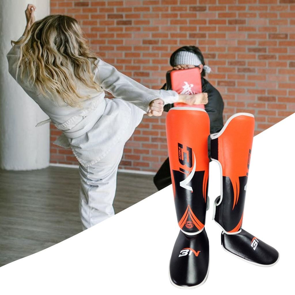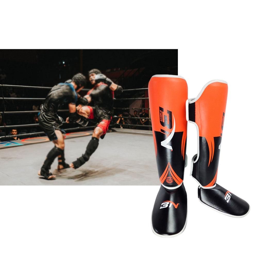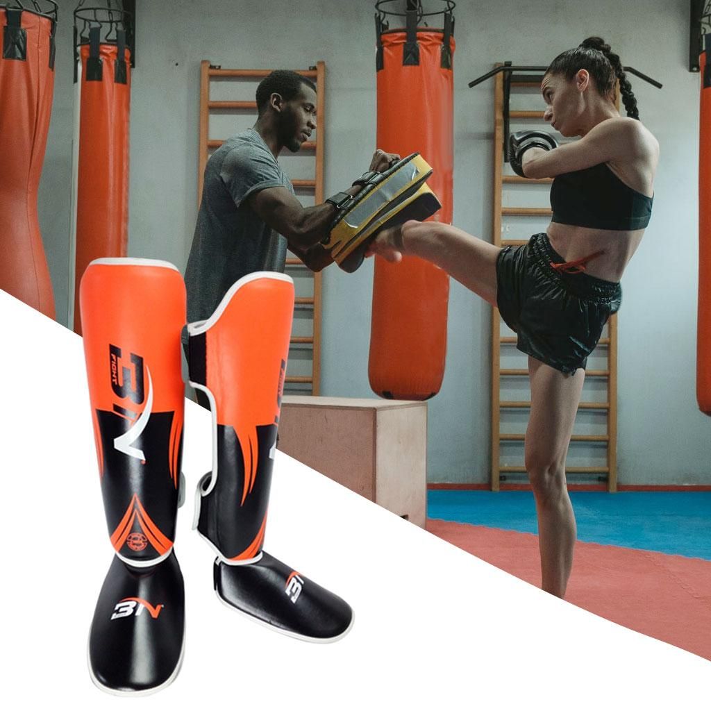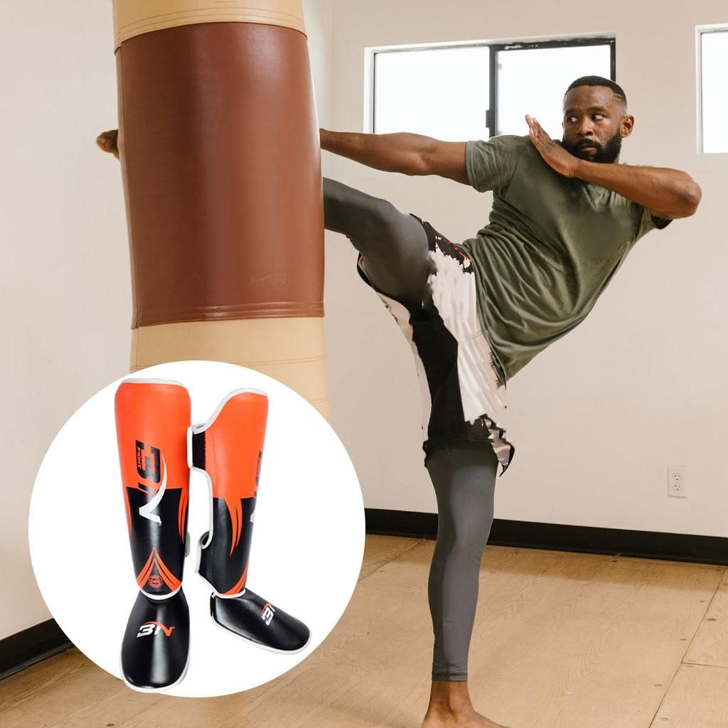 High-quality Materials: Made of high-quality PU leather and liner is high foaming liner+EVA, provides superb protection,environmentally friendly materials without odor. Durable, tough easy to clean and maintain.Protection Design:We put high impact protection foam in our shinguards. They'll absorb the biggest hits, so you can kick harder and train longerAdjustable Anti Skid Design: innovative non-slip design gives our sparring shin guards a very comfortable and snug fit. Our martial arts shin guards can be adjusted at the top using the velcroed strap.Widely Application:Fighting, MMA,boxing, Sanda training. Throughout exercises with these shin guards your ankle will remain 100% flexibility giving you complete mobility.Available In 3 Sizes: ---- S: most commonly used by individuals height 43.30-54.33 inch ----- M: most commonly used by individuals height 54.33-61.02 inch ----- L: most commonly used by individuals height 61.02-68.90 inch