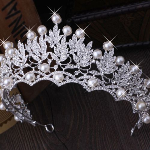 Fashion hair crown, features olive leaves design with fine hollowed craftsmanship, decor with shiny faux pearl.