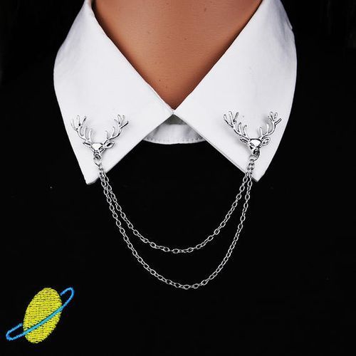 #Fashion New Shirt Collar Brooch Pin Deer Head Men Women Collar Brooch Lapel Accessories With Chain- Silver# Trending fashion, classy looks. For suit and shirt.