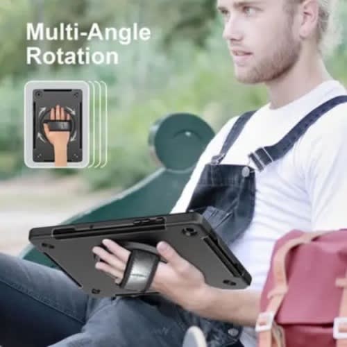 360 & deg; rotatable kickstand offers optimum position for typing or viewing; Ergonomic and comfortable back handle allows you to grip your tablet securely and steadily with one hand, worry-free from dropping it
