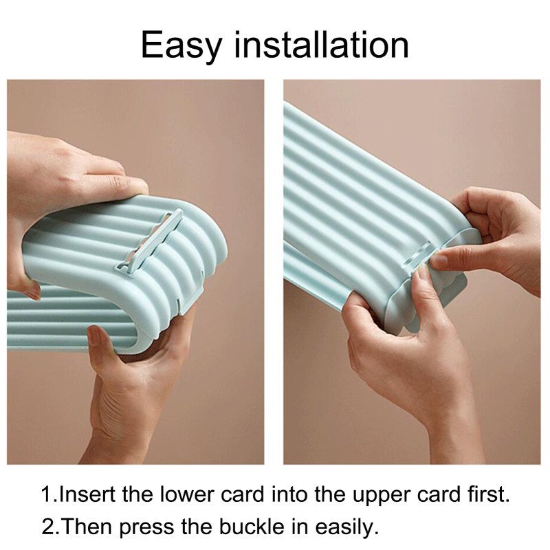 Designed with detachable buckle, this shoe rack is very easy for you to install, and it has a slopping and an anti-skid protection, so it is very easy for you to store and prevent shoes from sliding.