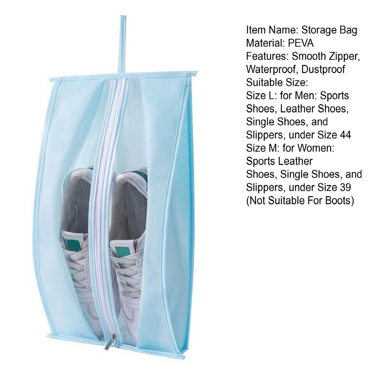 By the advantages of wear-resistance, ultra-light and moisture-proof, this storage bag has a longer lifespan. Moreover, different kinds of shoes and sneakers can be stored orderly and neatly with help of this large capacity clear bag.