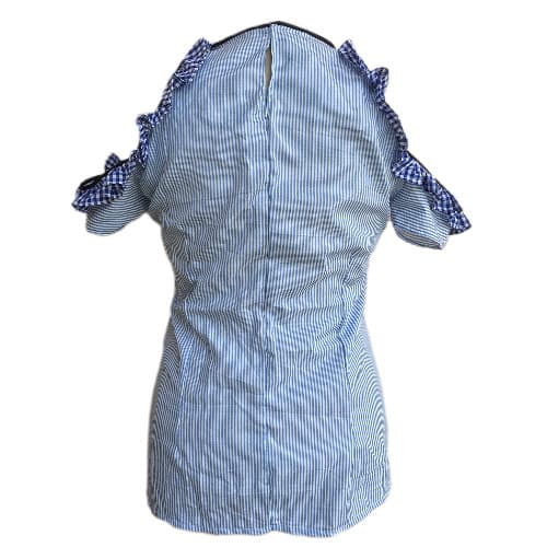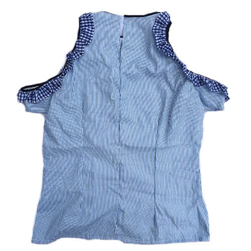 Buy Shopadaa - Ladies Short Sleeve - Stripe Cold Shoulder - Ruffle Top - Blue And White in Nigeria