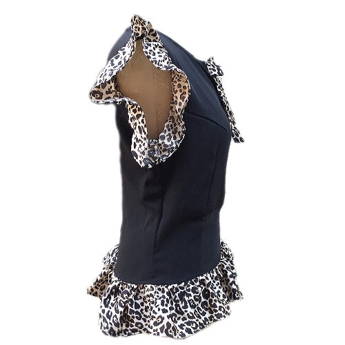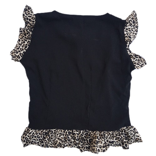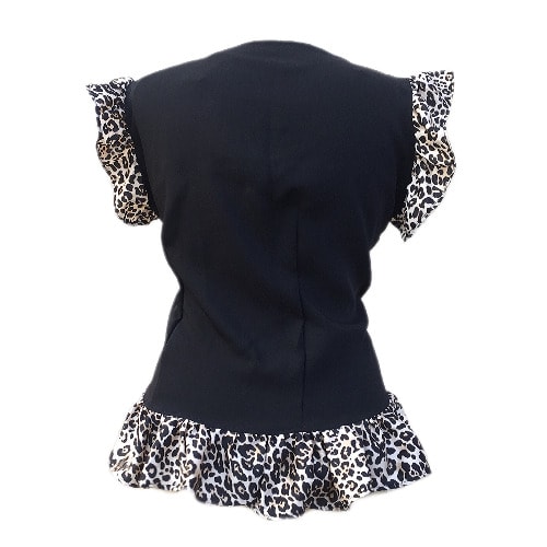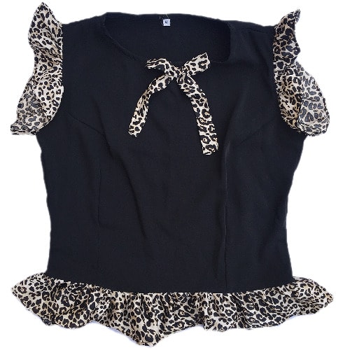 Buy Shopadaa - Ruffle Sleeve And Bow Tie - Black Top With Leoaprd Print in Nigeria
