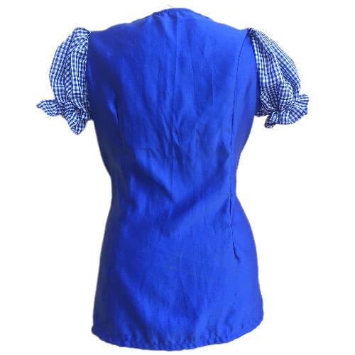 Buy Shopadaa - Top With Puffy Checkered Plaid Short Sleeve And Bow - Blue And White Blouse in Nigeria