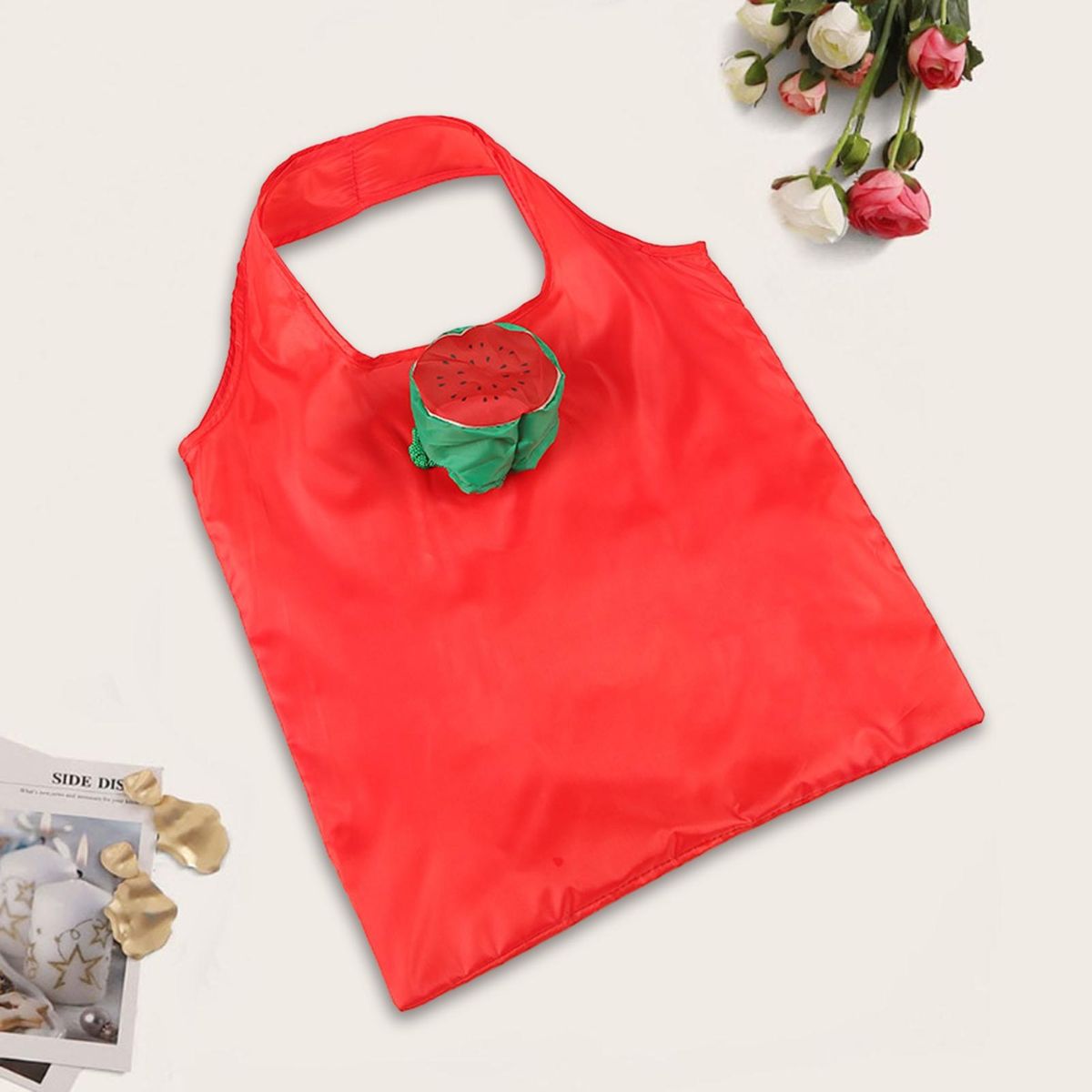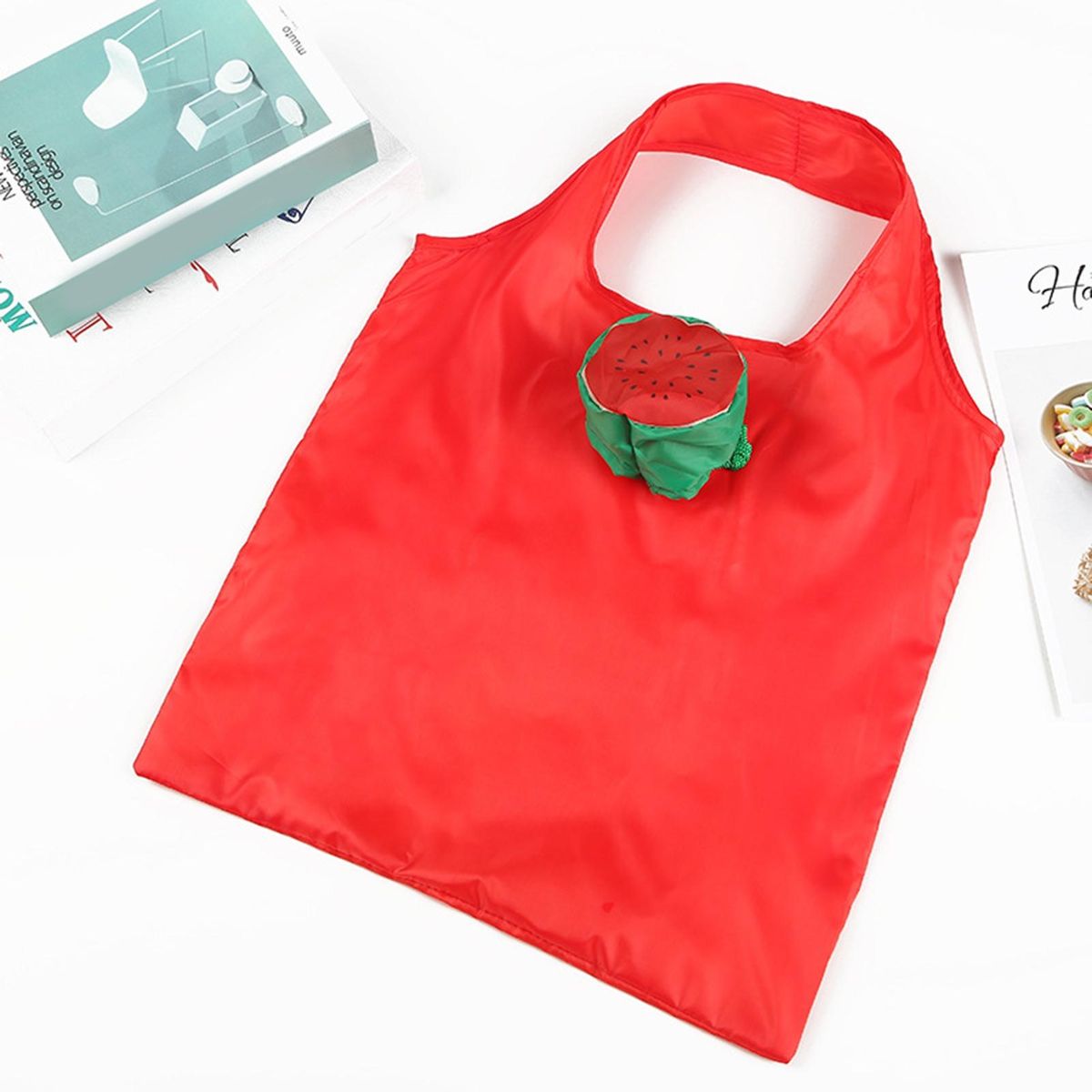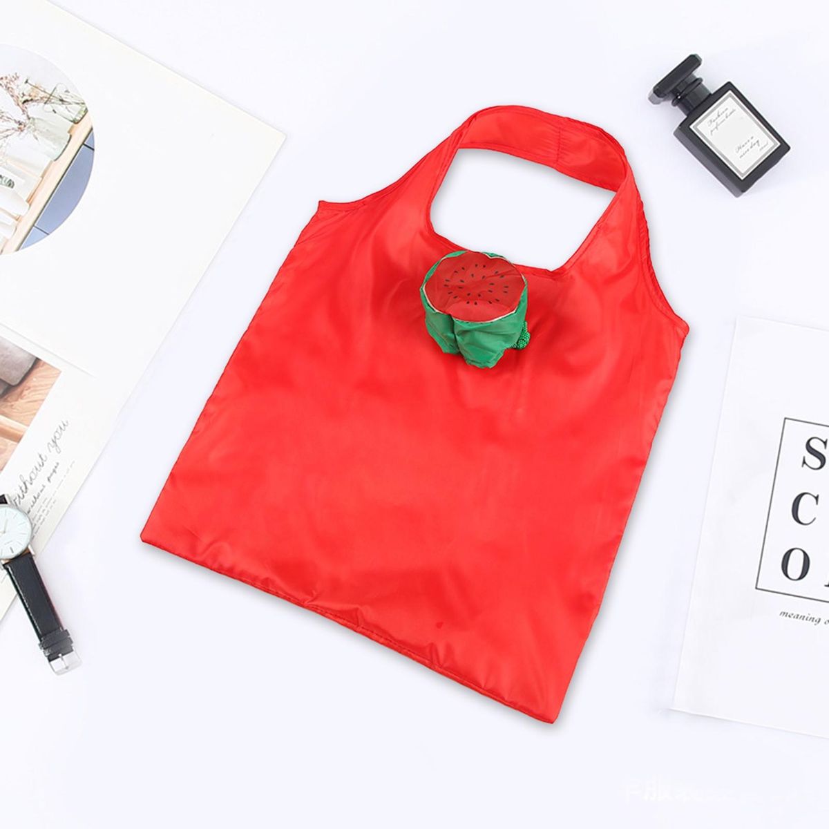 The shopping bag with cartoon fruit pattern can attract a lot of attention. And the sturdy handle, drawstring, and folding design makes it convenient to carry.