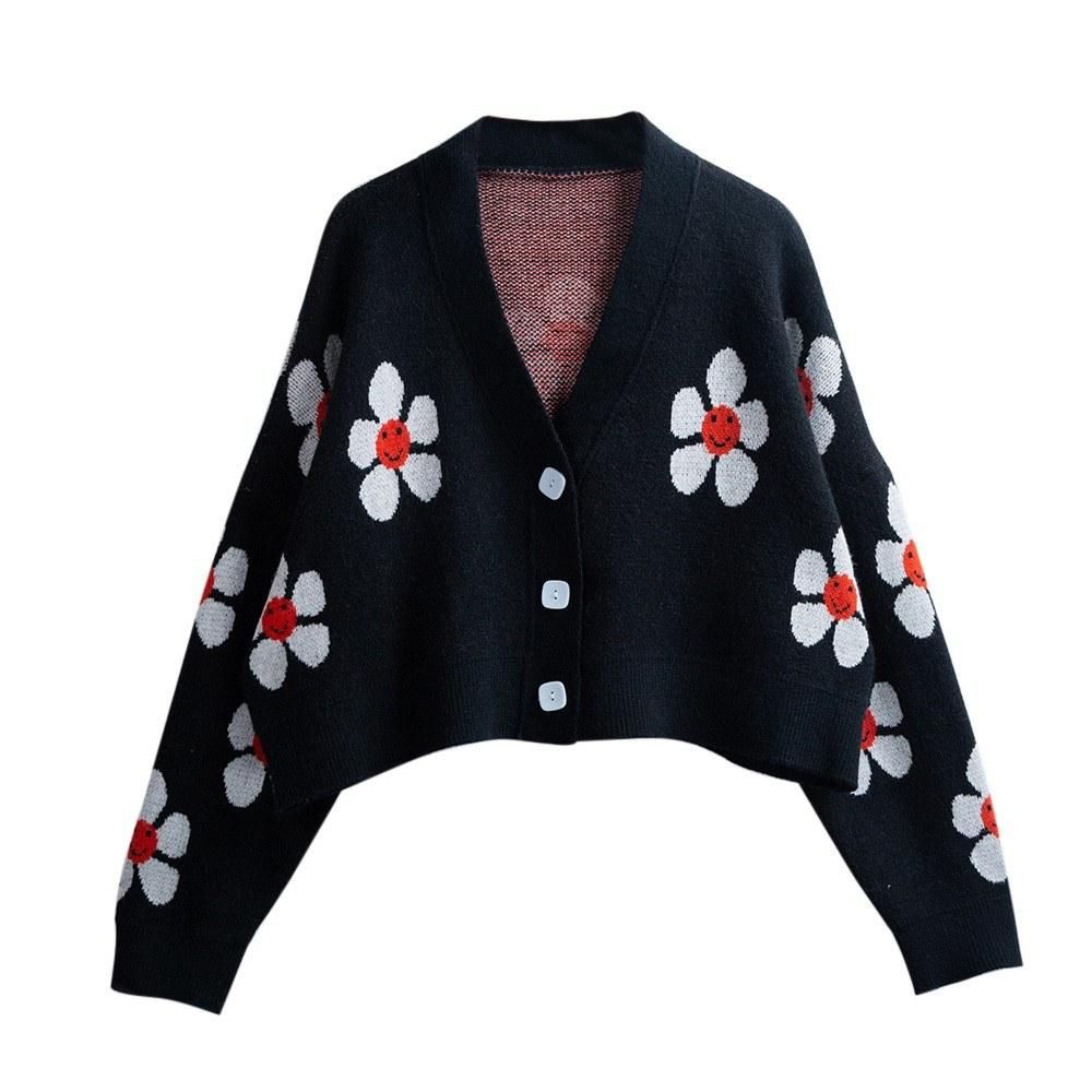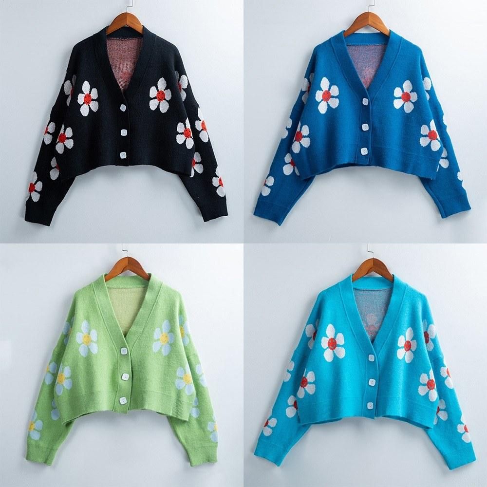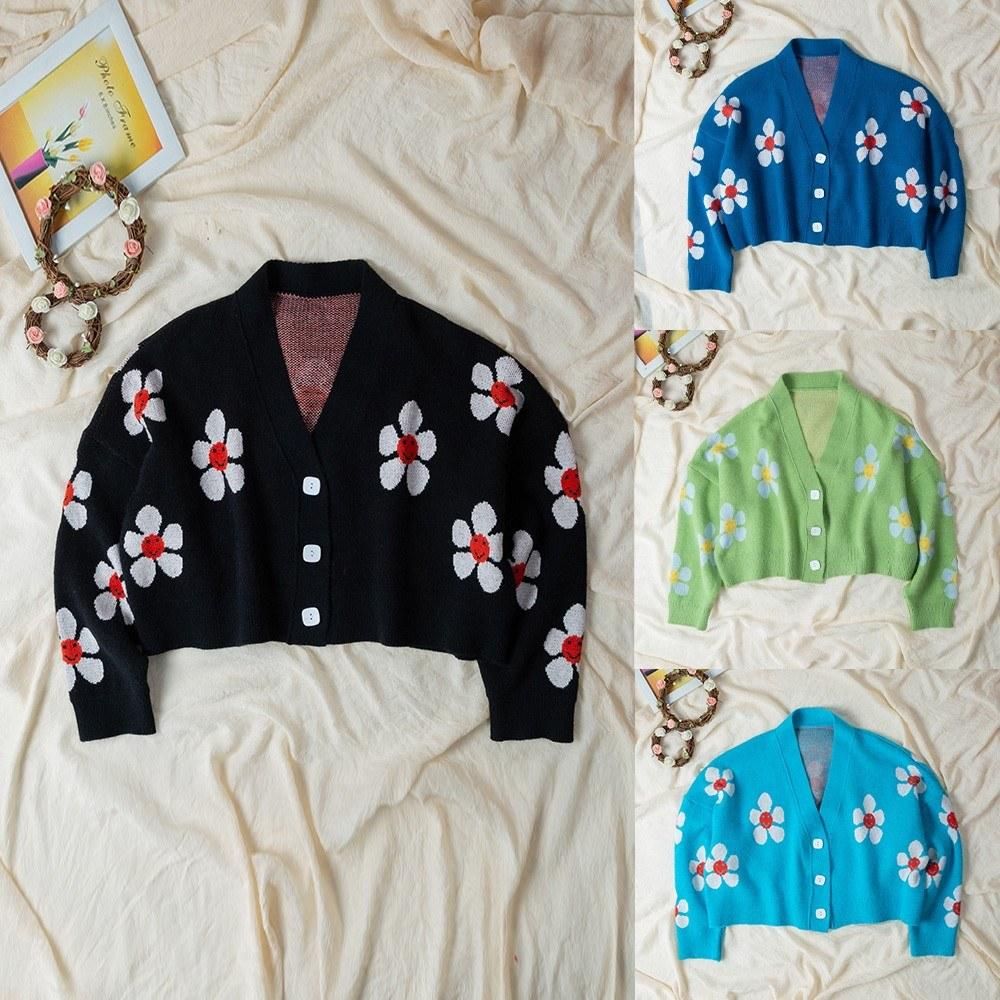Buy Short Cardigan for Women Flower Knit Sweater V Neck Button Long Sleeve Loose Coat Casual in Nigeria