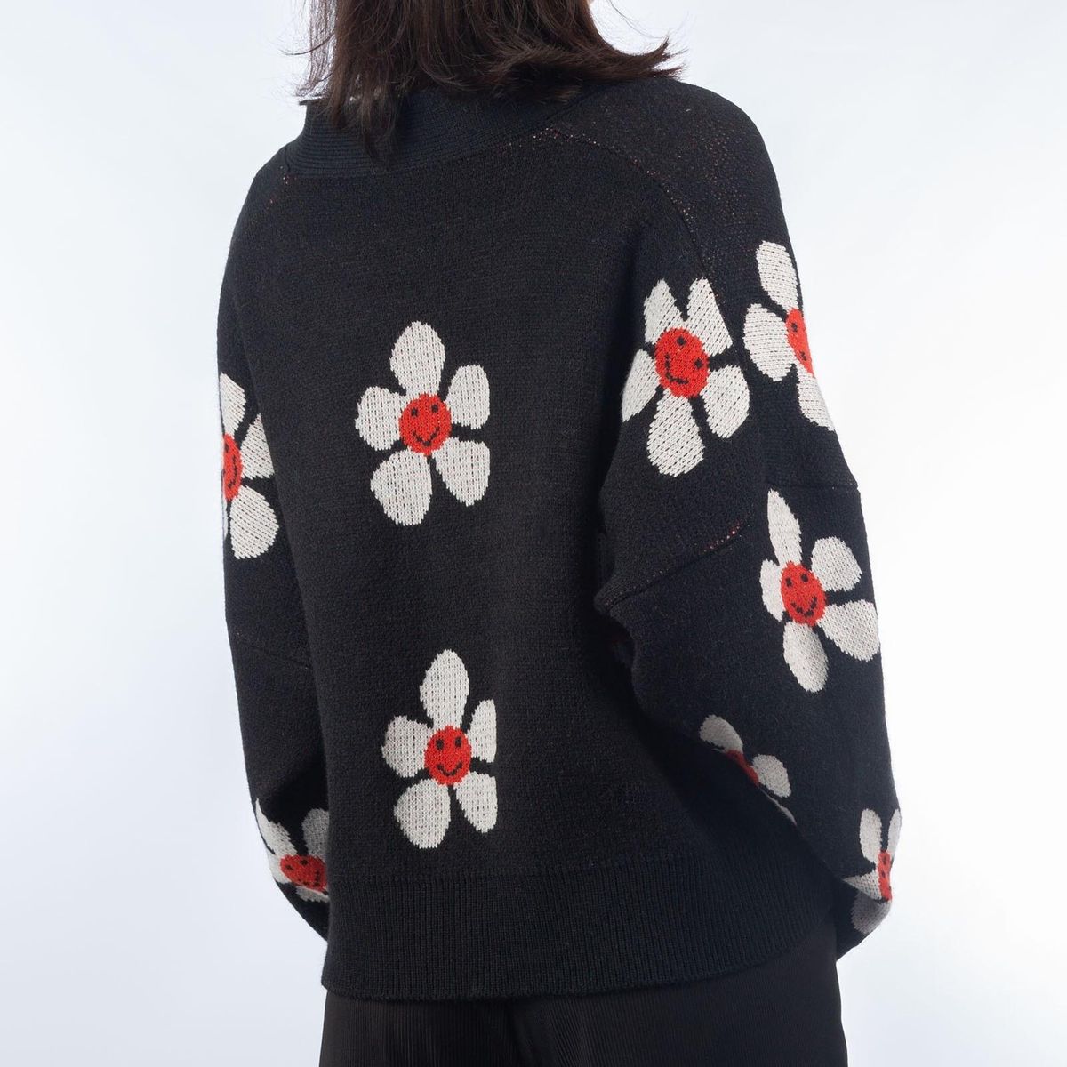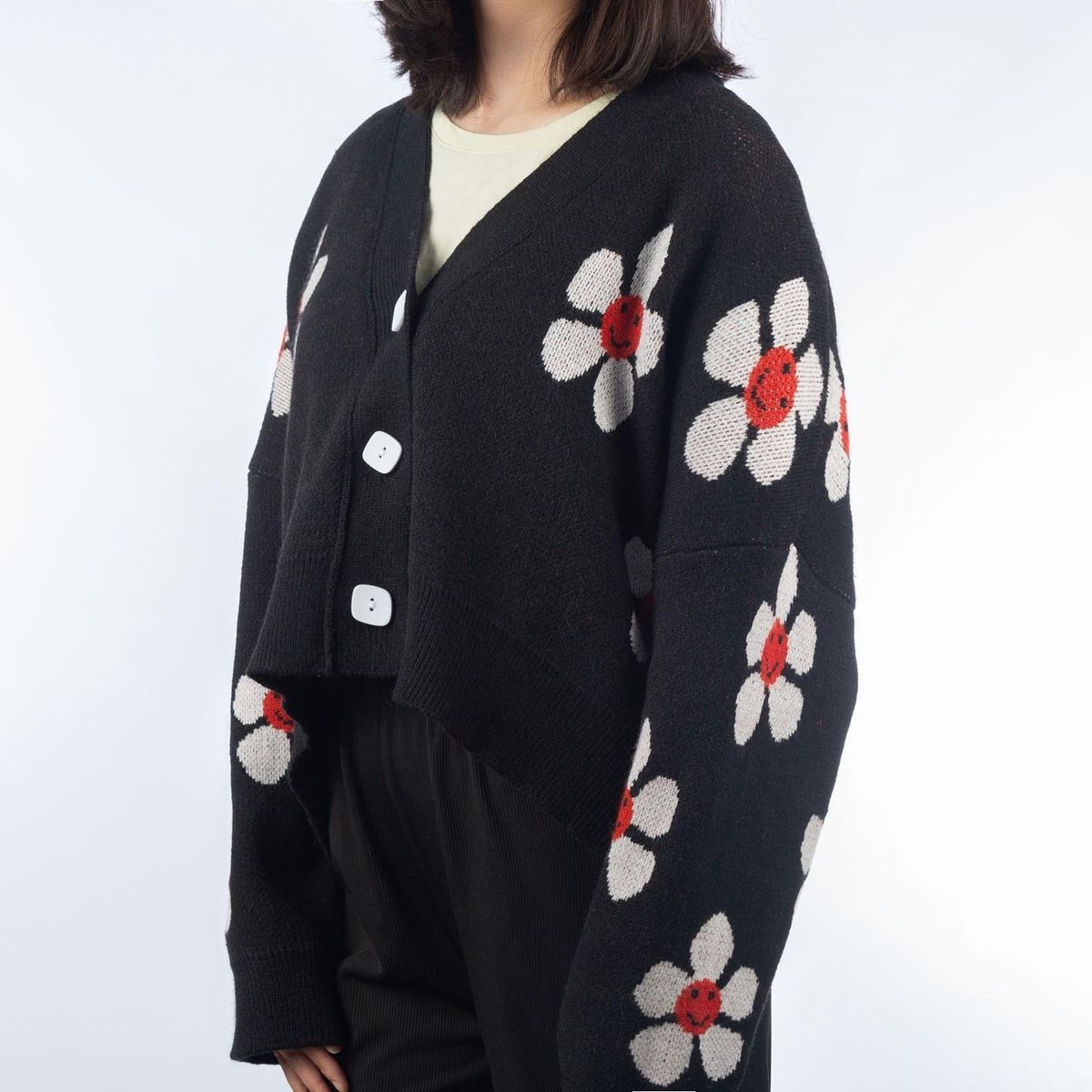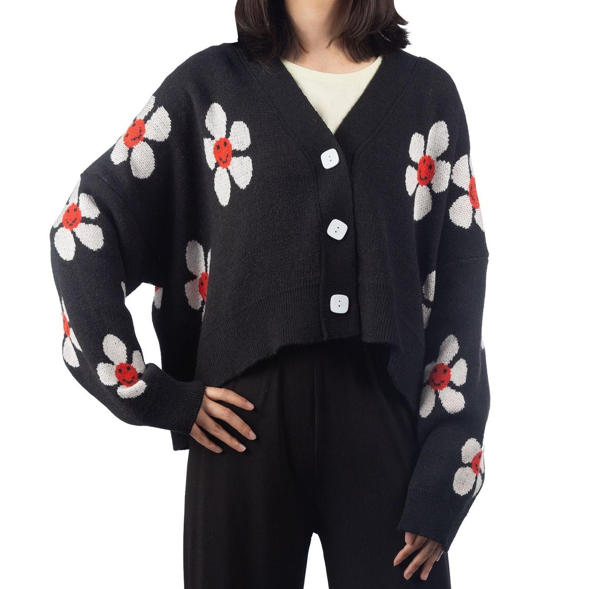 Buy Short Cardigan for Women Flower Knit Sweater V Neck Button Long Sleeve Loose Coat Casual in Nigeria
