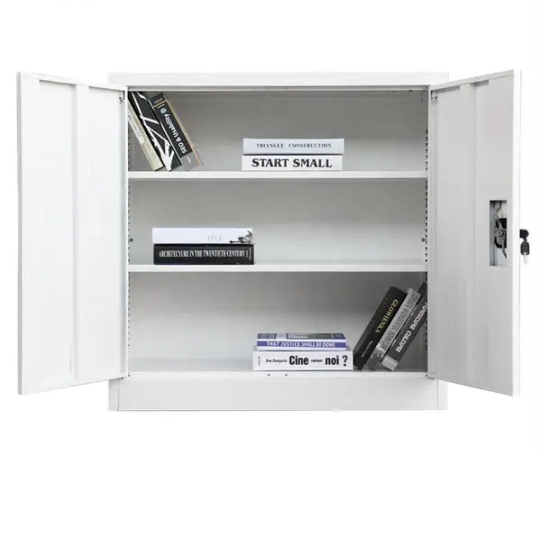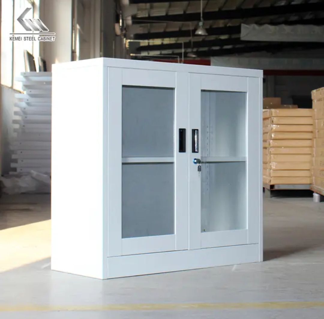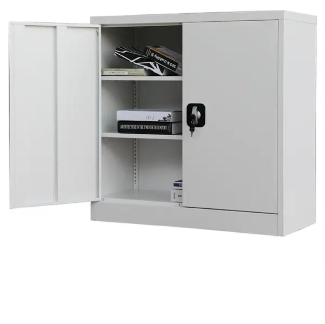 Metal cabinet Carmen CR-1263 J is a practical piece of office furniture intended for storing documents and different objects. It is equipped with two glass doors which provide safe storage for its contents and at the same time display it for easier access to the objects you need. The set has been designed with one shelf that is height adjustable depending on the specific use of the cabinet. CR-1263 J is smoothly powder coated in the typical for this kind of furniture grey colour which fits the formal office environment perfectly.