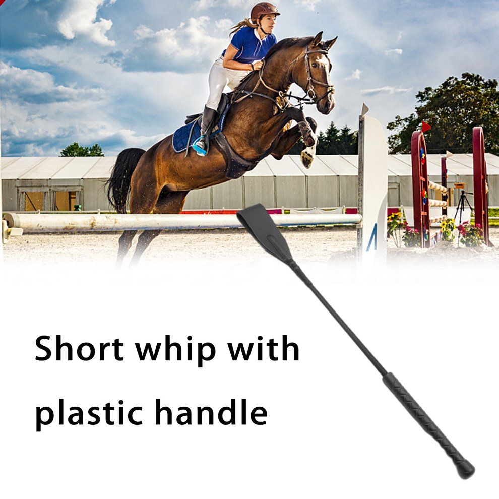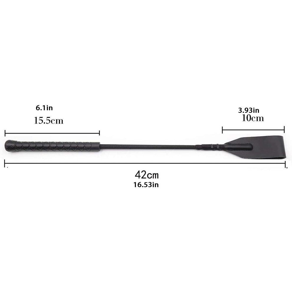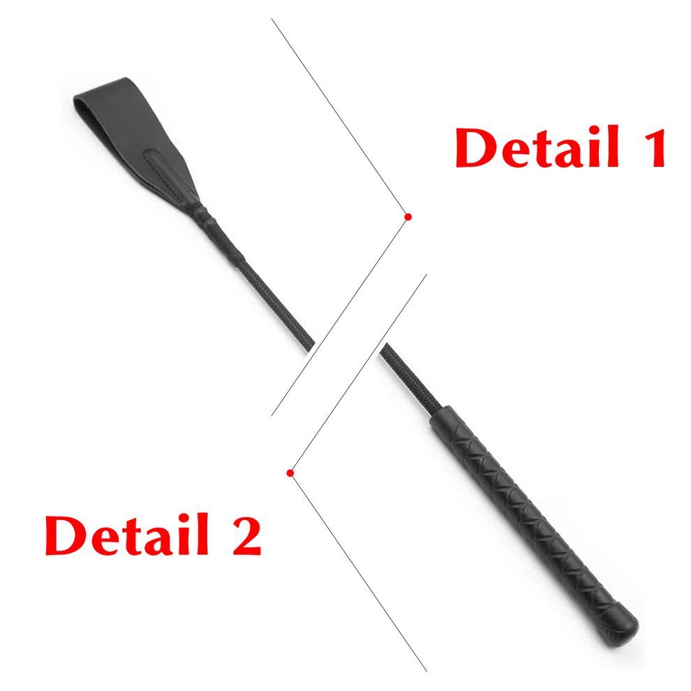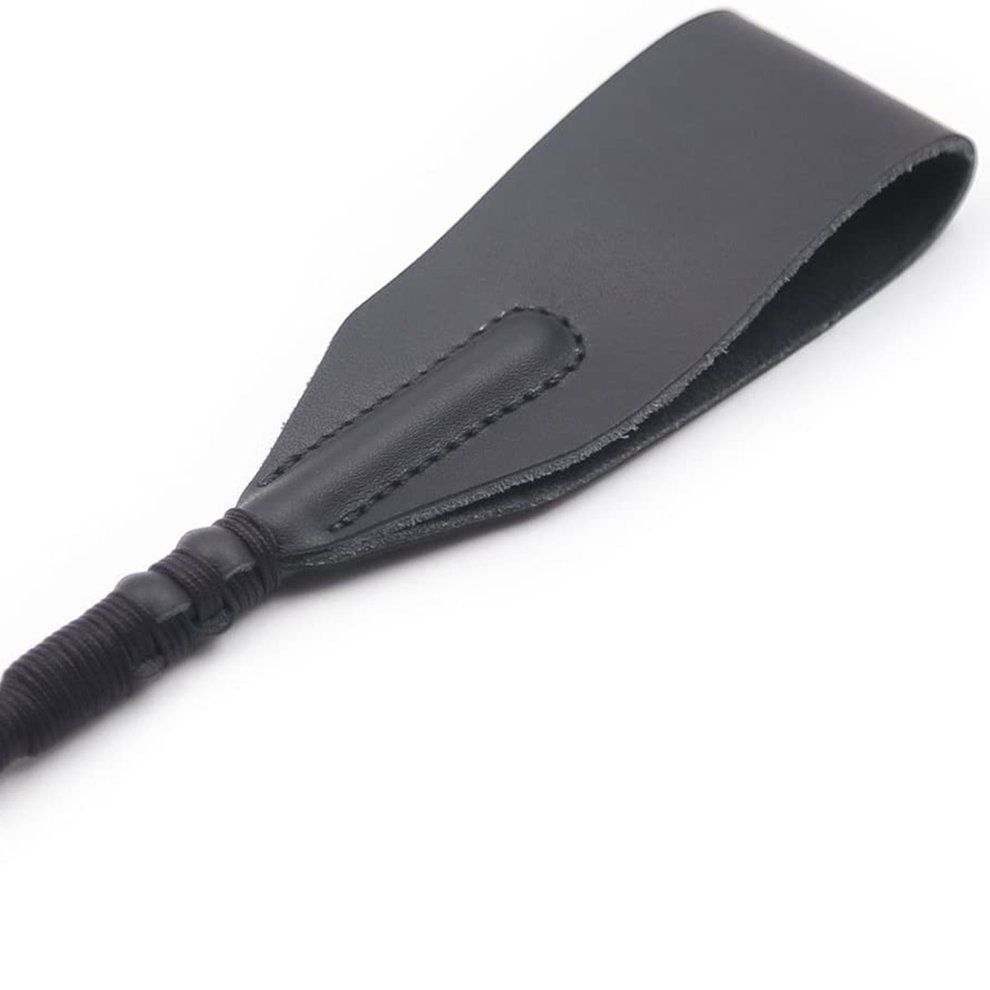 5. leather whip with bla k handle, with loop, an be hung somewhere when not in use.