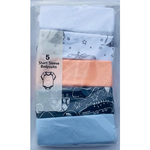 Assorted Animal Safari Print Short Sleeve Bodysuits 5 Pack 3-6 Months