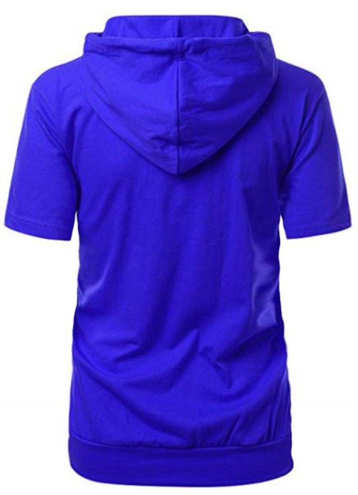 This is short sleeve hooded t shirt with cap and pocket. It is classic, in royal blue colour.