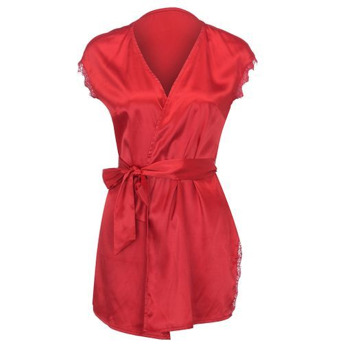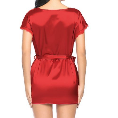 1X Short Sleeve Robe Women Satin Pajama Sexy Night Dress With Belt Nighties Nightgown Sleepwear Nightwear Nightshirt Bathrobe