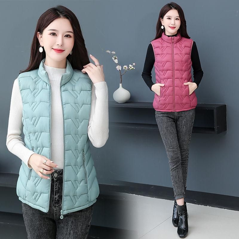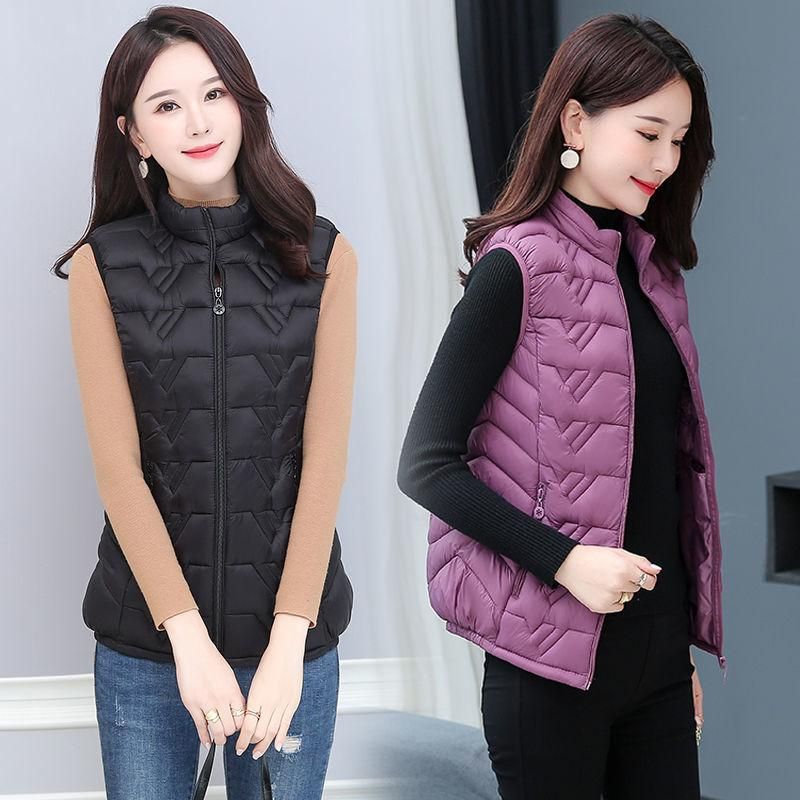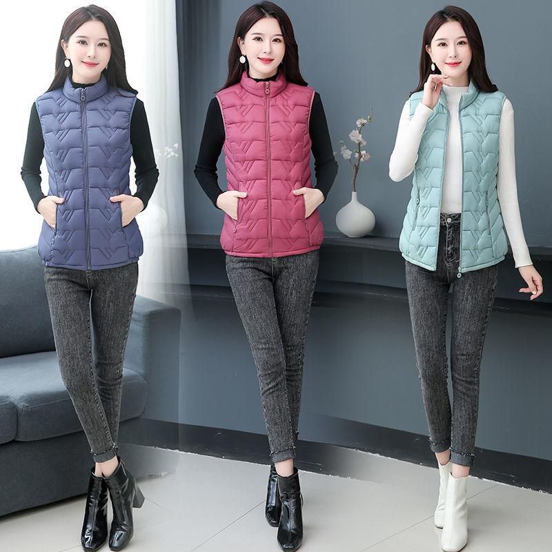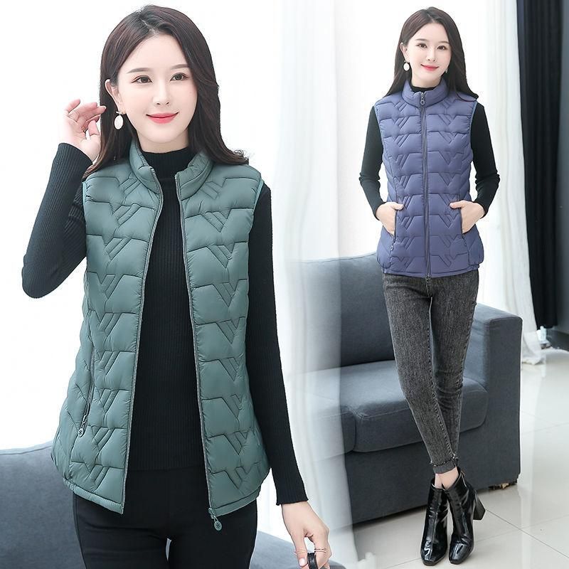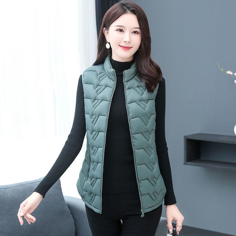 1X Chaleco corto de algodon sin mangas para Mujer, chaqueta acolchada de algodon, de talla grande, para Otono e Invierno