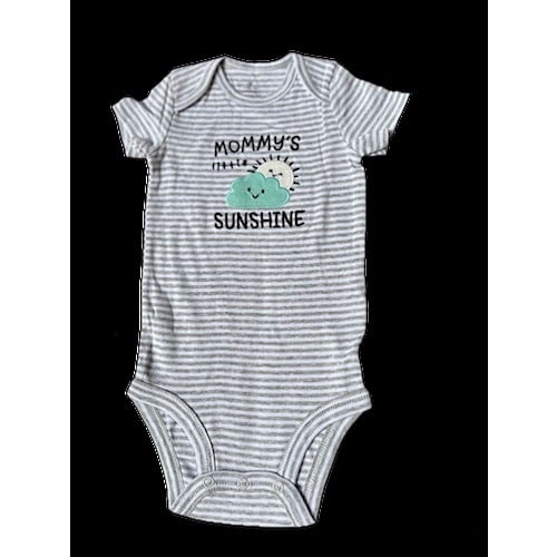 Bodysuits are made of 100% cotton for the softest touch on your baby's gentle skin. Bodysuits are essential to any baby's wardrobe, and these bodysuits are so comfortable that they can be used as underwear or even on their own. Assorted with printed designs, sayings, and prints; available in boy and girl designs and fits up to 12 month