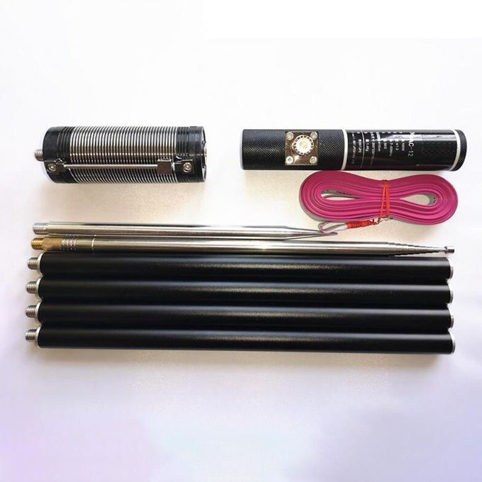 1xAluminum Alloy Base (Anodized to black) 1xMulti-band Load (40m-10m; Material: nylon. Note: Load is processed by opening mold instead of manual manufacturing) 1xGround Anchor 10x240 mm (Not plated to maintain good grounding) 4xAlumina Tubes Black 19x320 mm (Anode sandblasting oxidation) 1x2.5m Stainless Steel Telescopic Antenna (Thickness can be customized) 1x10-strand Ground Wire Cable (Tear as needed when using; Generally tear 3 strands) 1xCloth Bag