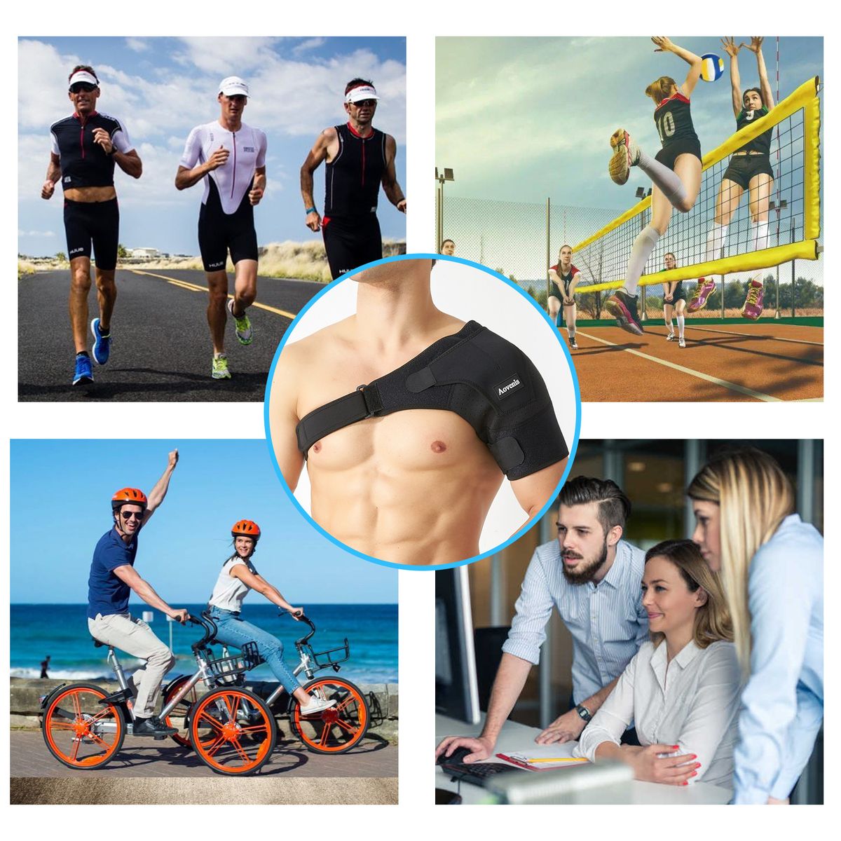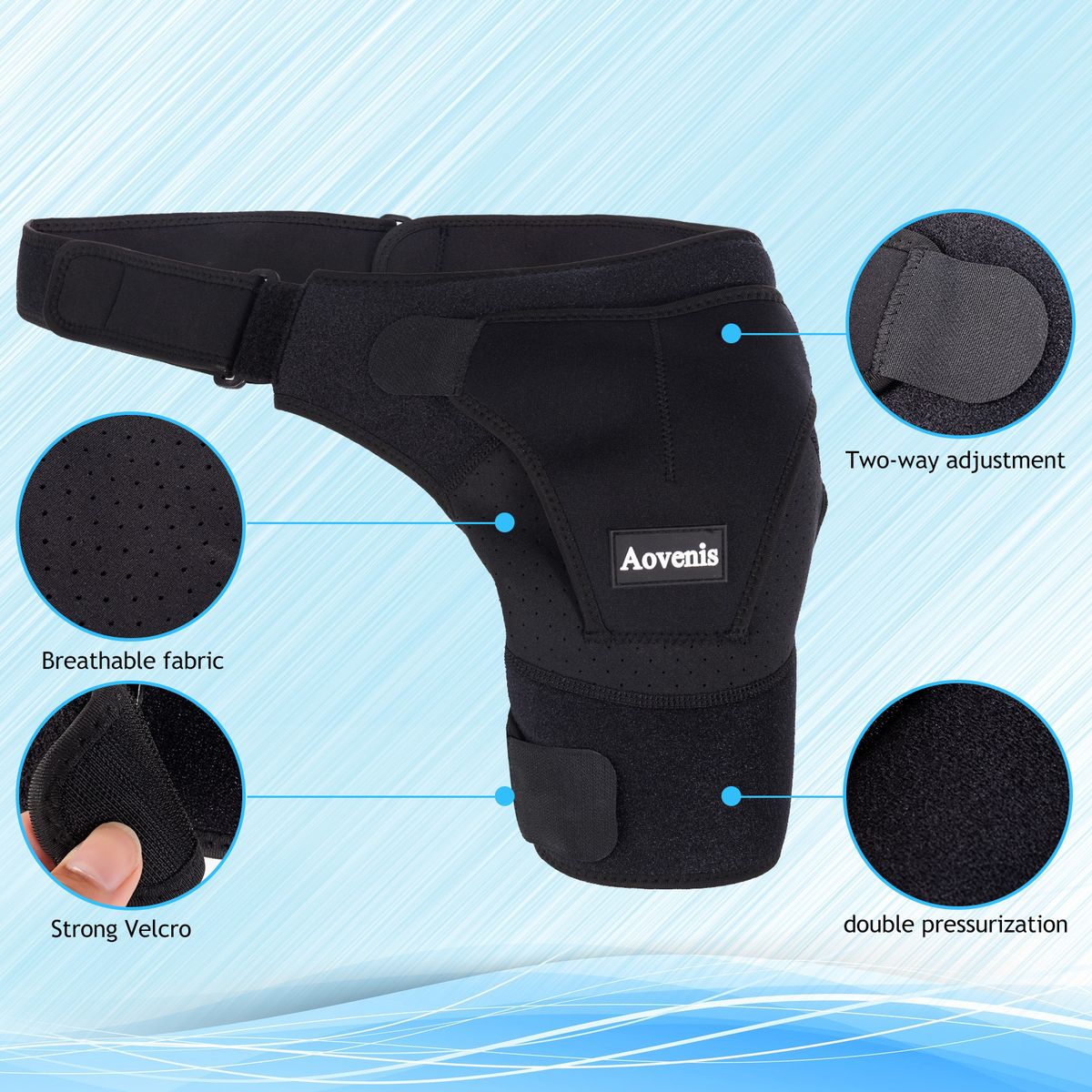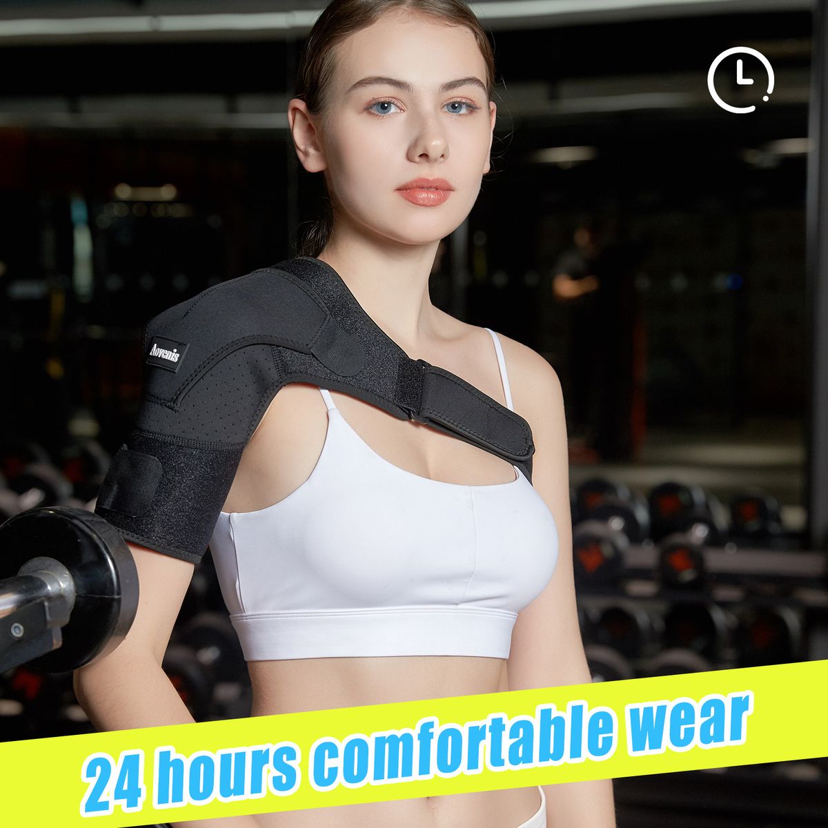Relieves shoulder pain:Shoulder pads provide therapeutic compression and stable support, with double pressurization to reduce the range of motion and maintain stability. Relieves shoulder injuries, frozen shoulder, torn rotator cuffs, dislocations and other shoulder problems and promotes health.Two-way adjustment pressurized shoulder brace:Our shoulder braces are carefully designed with two straps on the shoulders and arms that can be adjusted to fit your situation. The one-piece design makes it easy for you to wear it yourself. Suitable for both men and women.Breathable, lightweight material:The shoulder support is made of high-quality materials, light weight, good durability, and the hole design is breathable, keeping air circulation and gently attaching to the shoulder for added comfort. An ice pack pocket allows for additional relief! Suitable for multiple occasions:Our back support bracket allows freedom of movement and long-term comfort, so you can wear it without worry when you work, sleep or exercise, and you can wear it under loose clothing.Meet your needs:Our shoulder rests can help you recover or prevent further injuries. Shoulder support pads with multiple layers of protection give you confidence!