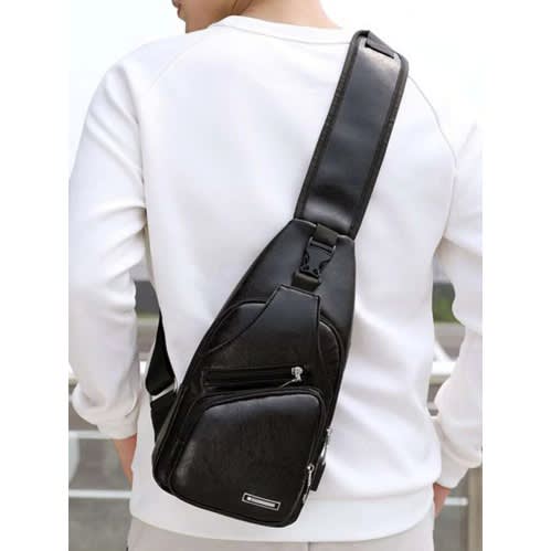 Men's Leather Chest Bag - Casual Sling Shoulder/ Waist Bag - Black