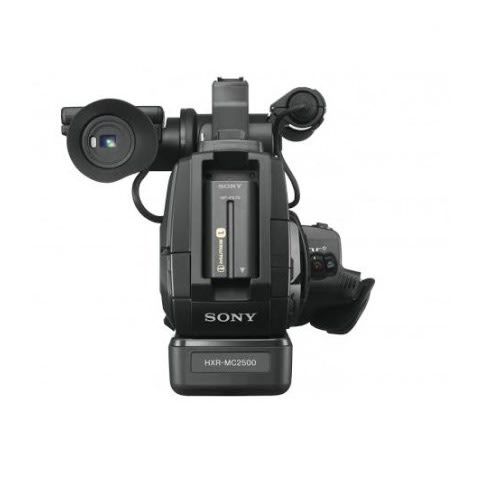 The HXR-MC2500 Shoulder Mount AVCHD Camcorder from Sony is designed for shooters looking for the inherent stability and professional feel a shoulder-mount form factor provides. It features a 1/4" Exmor R CMOS chip that can work with as little as 0.8 lux illumination when in SD mode, and low-light performance is further augmented by a built-in LED light shining 800 lumens at 1.6; distance. The camera records Full HD in the widely supported AVCHD format and can record SD in the DV codec with an AVI wrapper. Using DV rather than DVD-style MPEG-2 compression for SD means a higher quality thanks to lower compression and compatibility with more editing software. The camera is Wi-Fi enabled, allowing you to control it from an app as well as monitor a low-latency live feed on a smartphone or tablet.