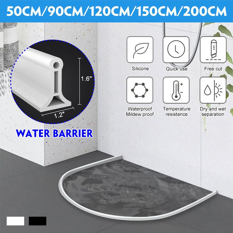 Shower Bathroom Water?Barrier 50-200cm Free Bending Silicone Water Barrier Water?Stopper?Strip Dam Shower Barrier White Black Height 40mm