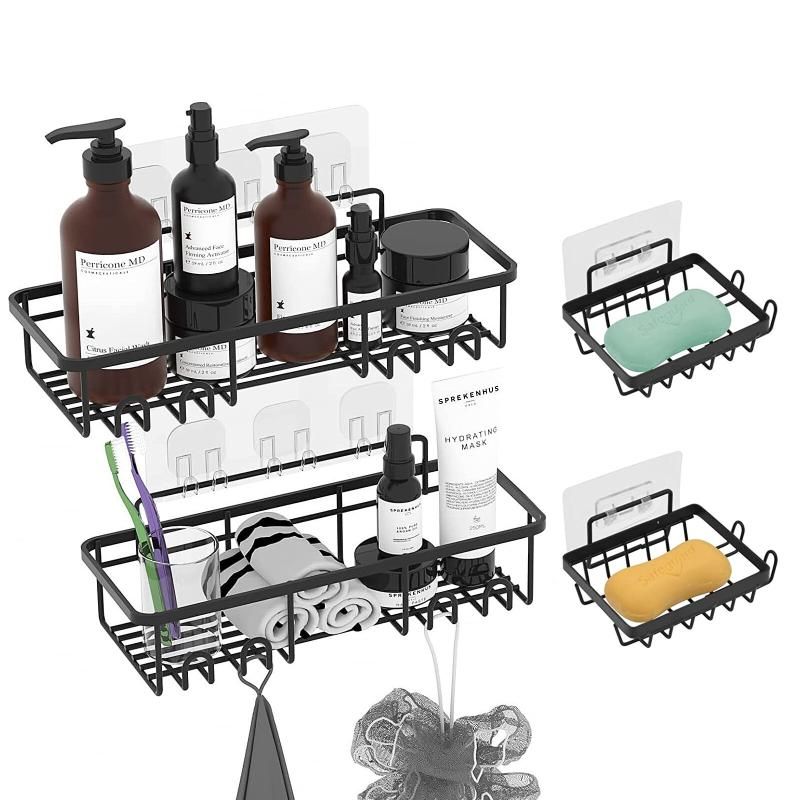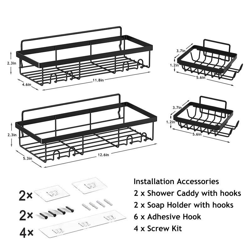 Shower Caddy w/ Soap Dishes Wall Mount Shelf (Black)
