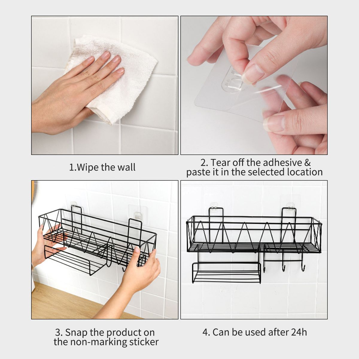 [Stable Installation]Wall-mounted shower shelf with a sticker that ensures long-term usage.