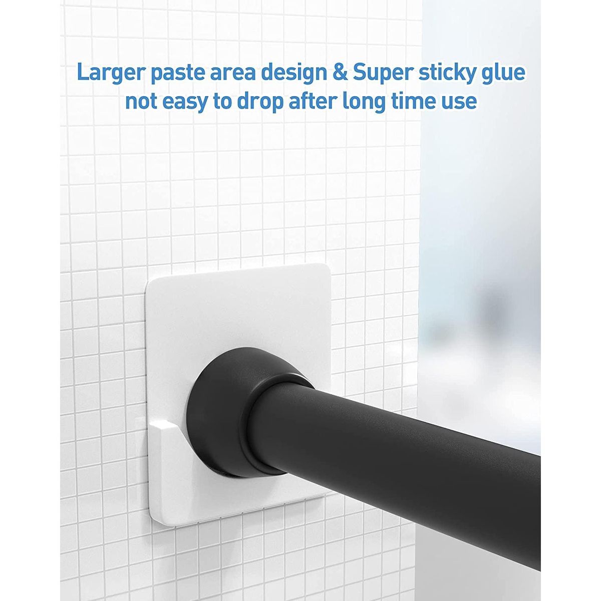 4, High-Quality Materials:Made of high-quality heavy-duty materials.This special material has enhanced durability,is easy to clean and can withstand the test of time without cracking.Strong adhesion-the shower curtain rod bracket can be firmly bonded to most common surfaces.