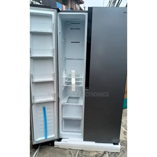 The Hisense 516Ltrs Side By Side Refrigerator 67WSI Featuring, Super Cool,And Freeze Functions, Alarm Function, A Smart Defrost System, LED Display Control, Adjustable Feet, Child Lock Function, Multi Airflow System For Extra Convenience. It's Highly Energy Efficient and Cost Effective.