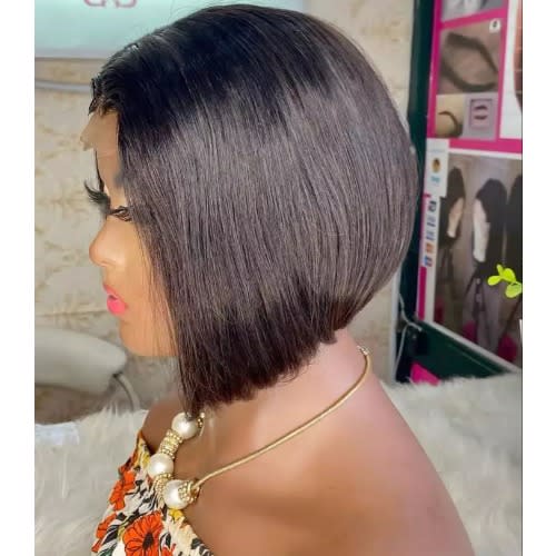 classic side part double drawn bob with closure is a unique Bob wig the make one look esteem and stand out in front of crowd. this classic wig is a real human hair with a closure. it a side part wig to make you look unique.