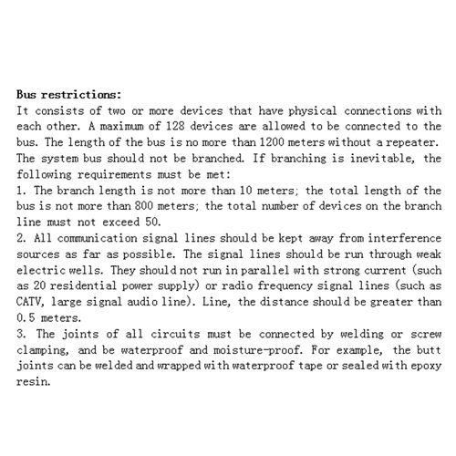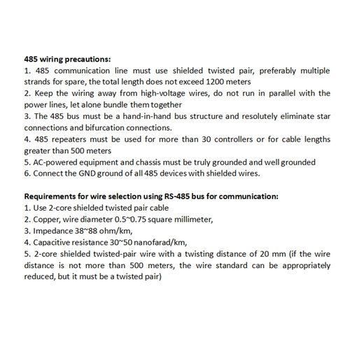 1. 485 communication line must use shielded twisted pair, preferably multiple strands for spare, the total length does not exceed 1200 meters.