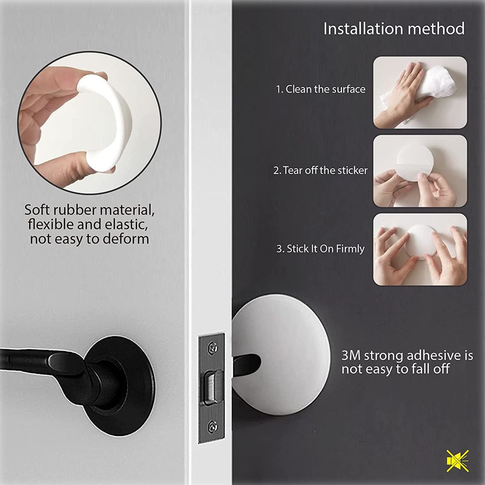 Easy to install - no tools needed, first open the door, mark the place where the door handle touches, and second, clean and dry. Third, stick the door handle bumper to the marked place, and press firmly for 5 seconds. (Before installation, clean the wall to ensure that it is free of dust, water and oil)