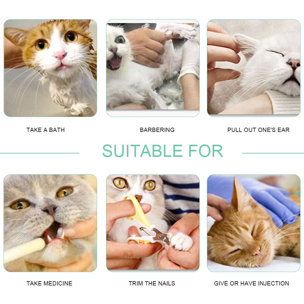 Prime Quality: Made of environmentally friendly silicone material, soft and safe to use. This product can be used to bathe, haircut, examine and treat cats.