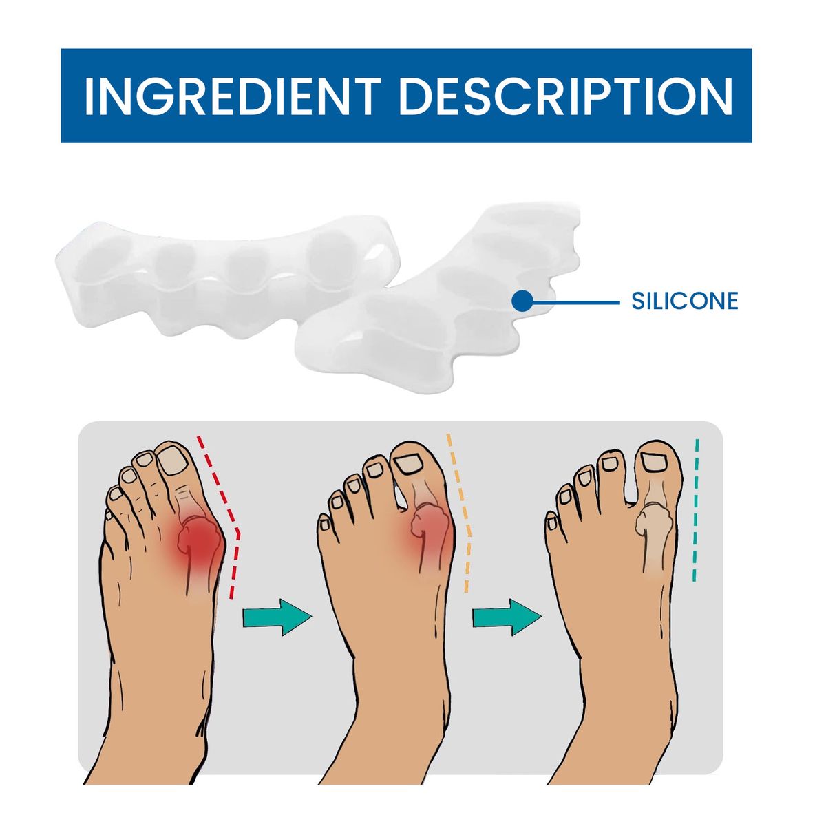 Package Include: 2pcs Silicone Bunion Corrector