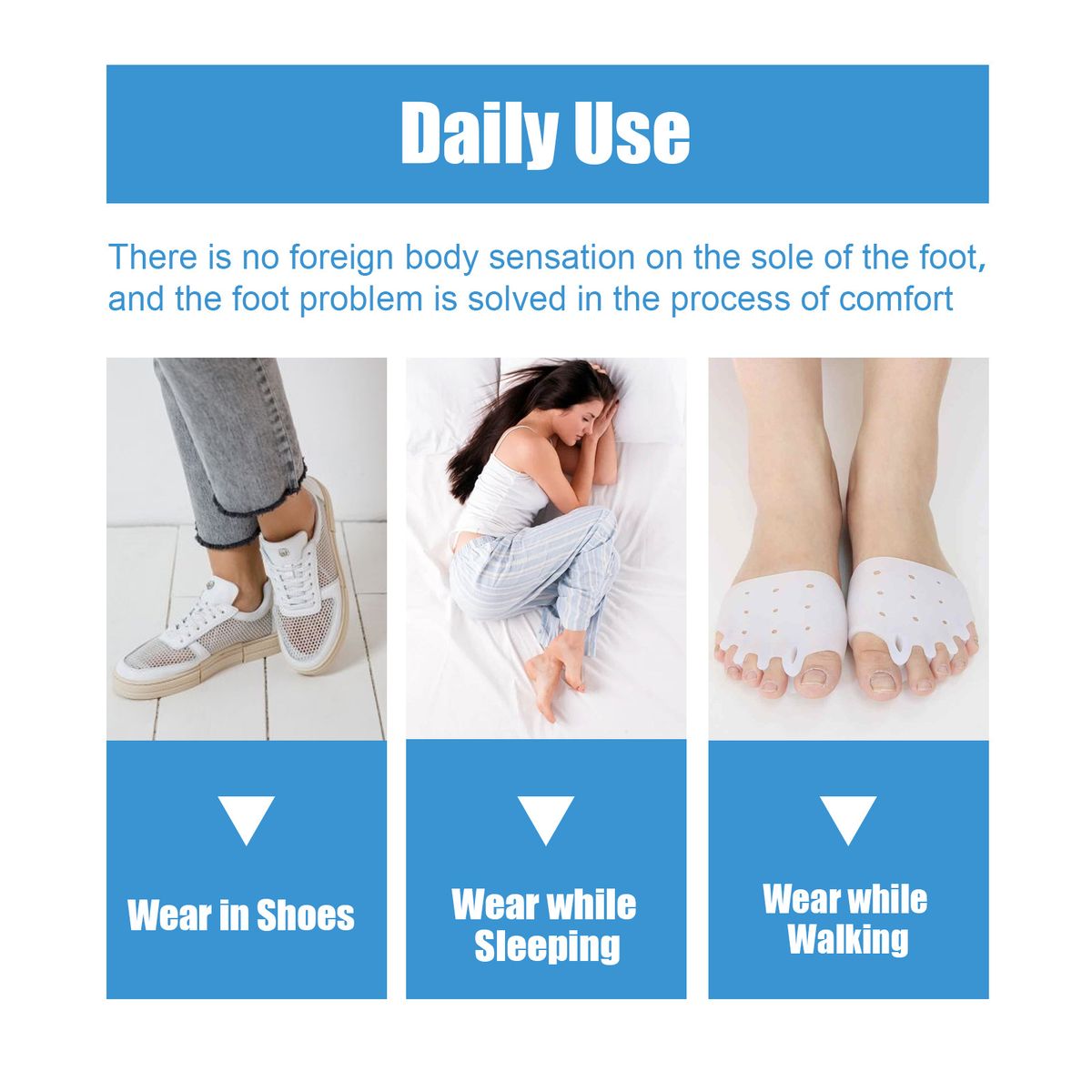 Can be used at night, while watching tv, while practicing yoga, and even in wide-toed athletic shoes for running.