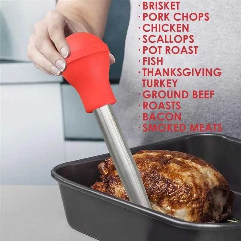 Buy Silicone Chicken Turkey Baster Meat Syringe Marinade Injector Including Needle And Extra Brush BBQ Kitchen Assessoies in Nigeria
