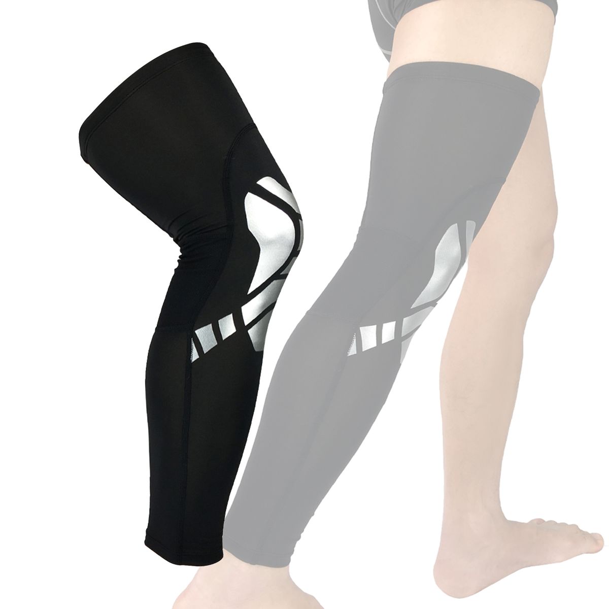 Buy Silicone Compression Long Leg Support Brace Sleeve Black And Sliver M in Nigeria
